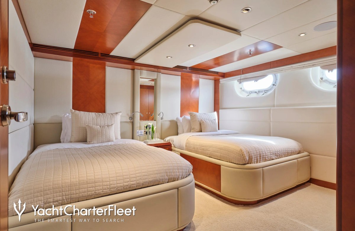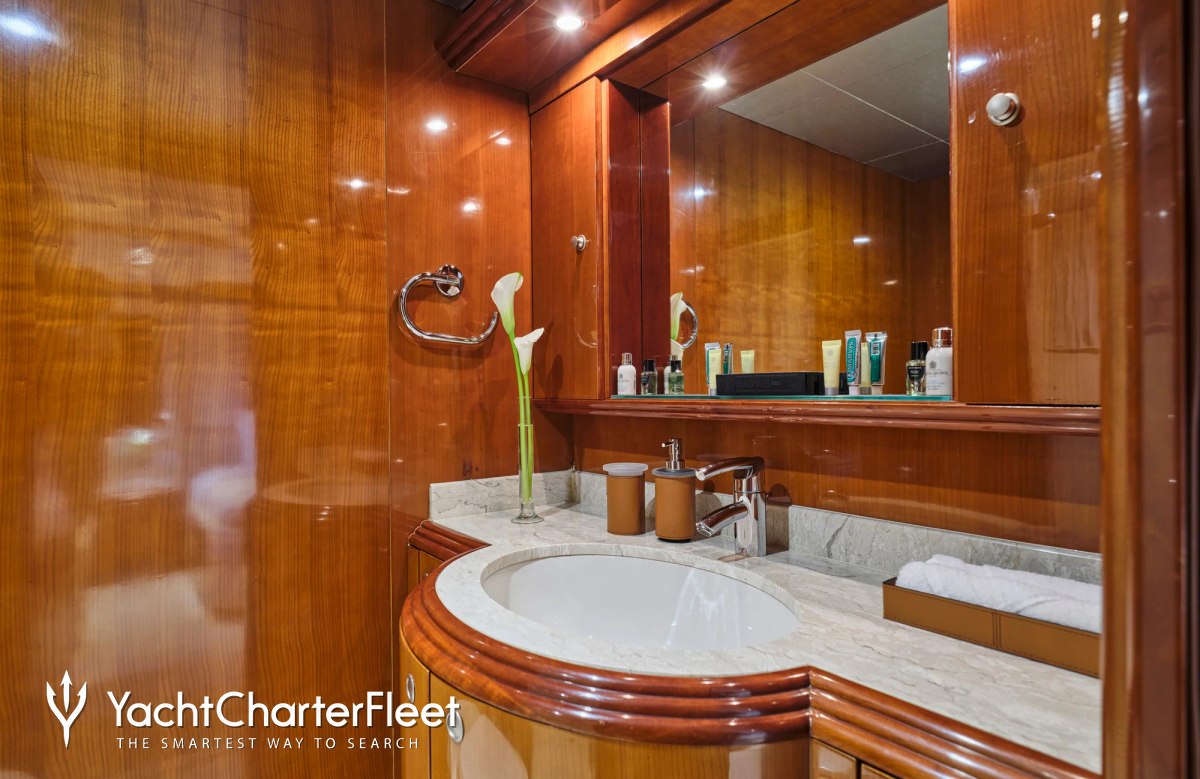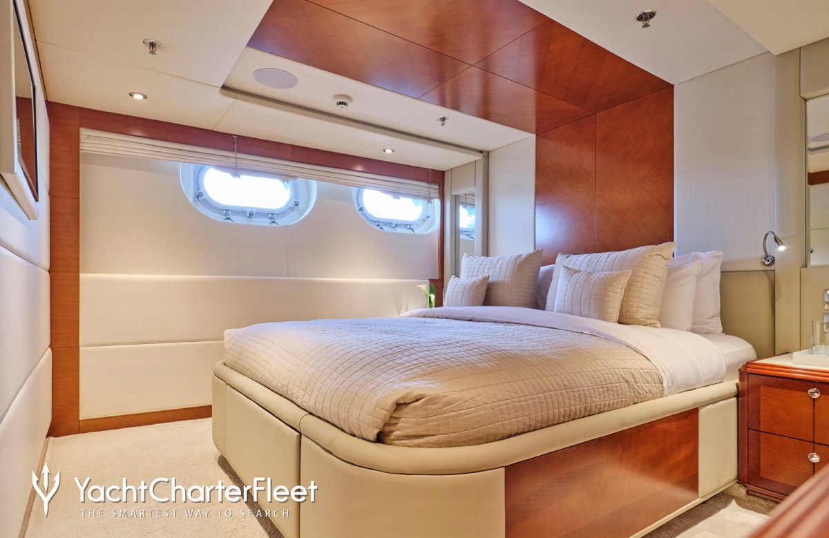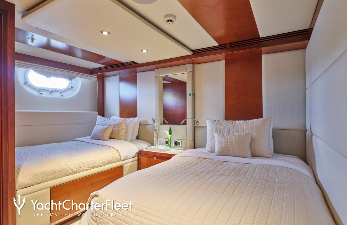 Built in 1984, Sojo offers guest accommodation for up to 12 guests in 6 suites comprising a master suite, one VIP cabin, two double cabins and two twin cabins. Additionally, there are 2 staff cabins aboard. She is also capable of carrying up to 18 crew onboard to ensure a relaxed luxury yacht charter experience.