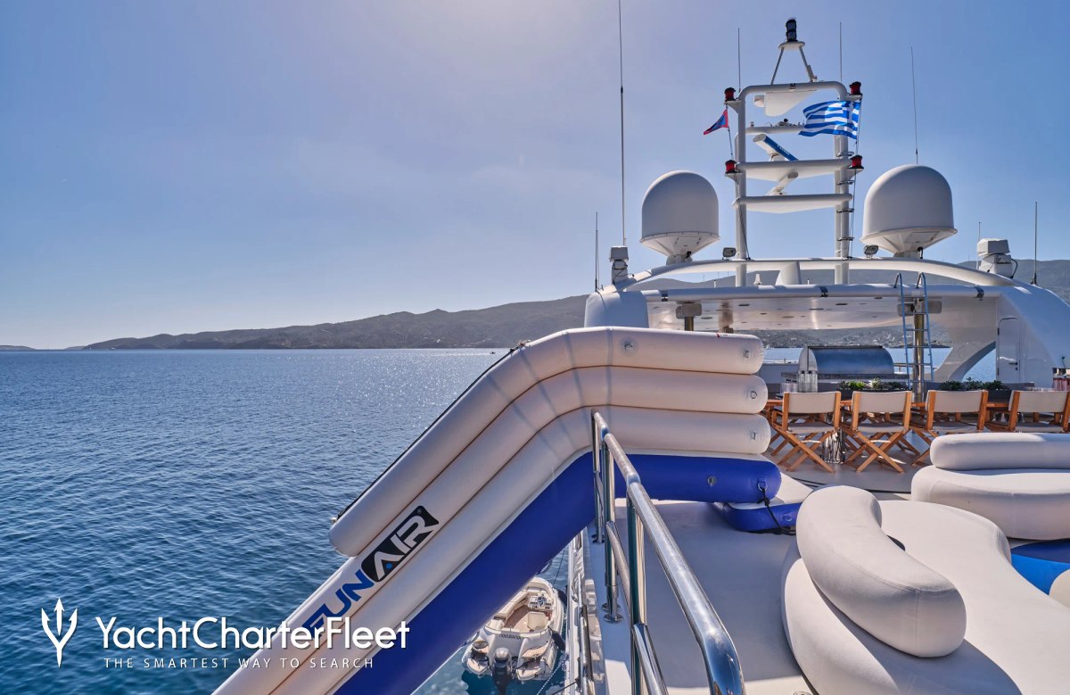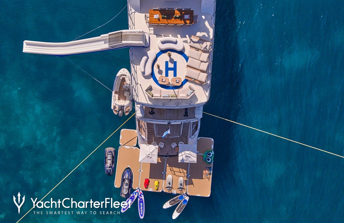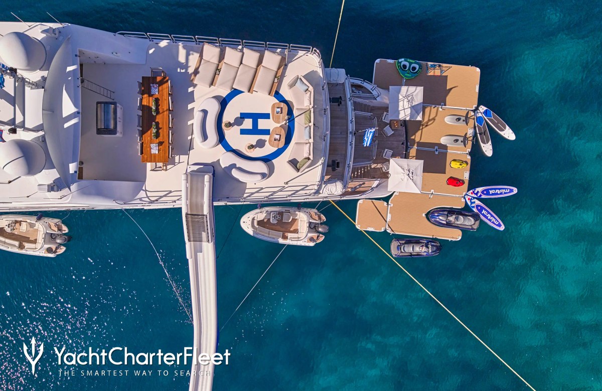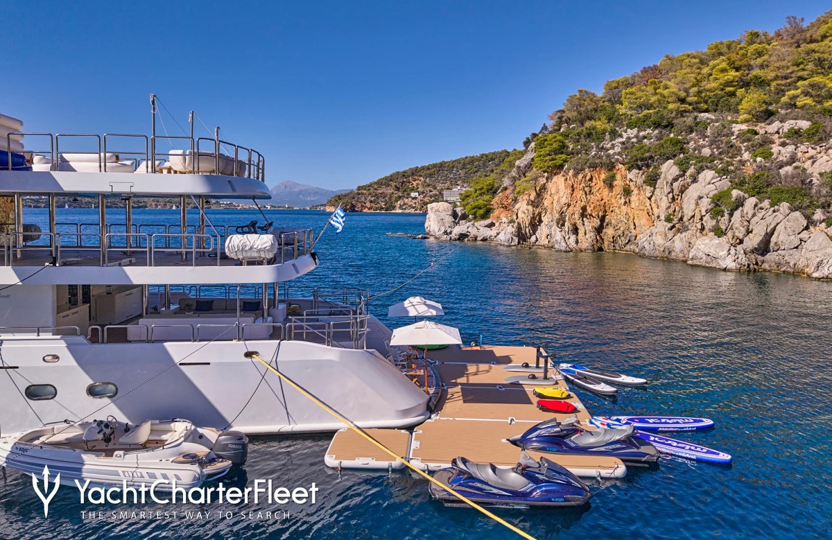 Equipped with a selection of water-toys Sojo lets you and your guests turn the Mediterranean into your own private playground. Principle among these is a waterslide for guests of all ages to enjoy. Take to the sea on the Jet Skis offering you power and control on the water. Also there are two SEABOBs, that allow you to skim along the surface or steer under the crystal water and experience life swimming with the fish.