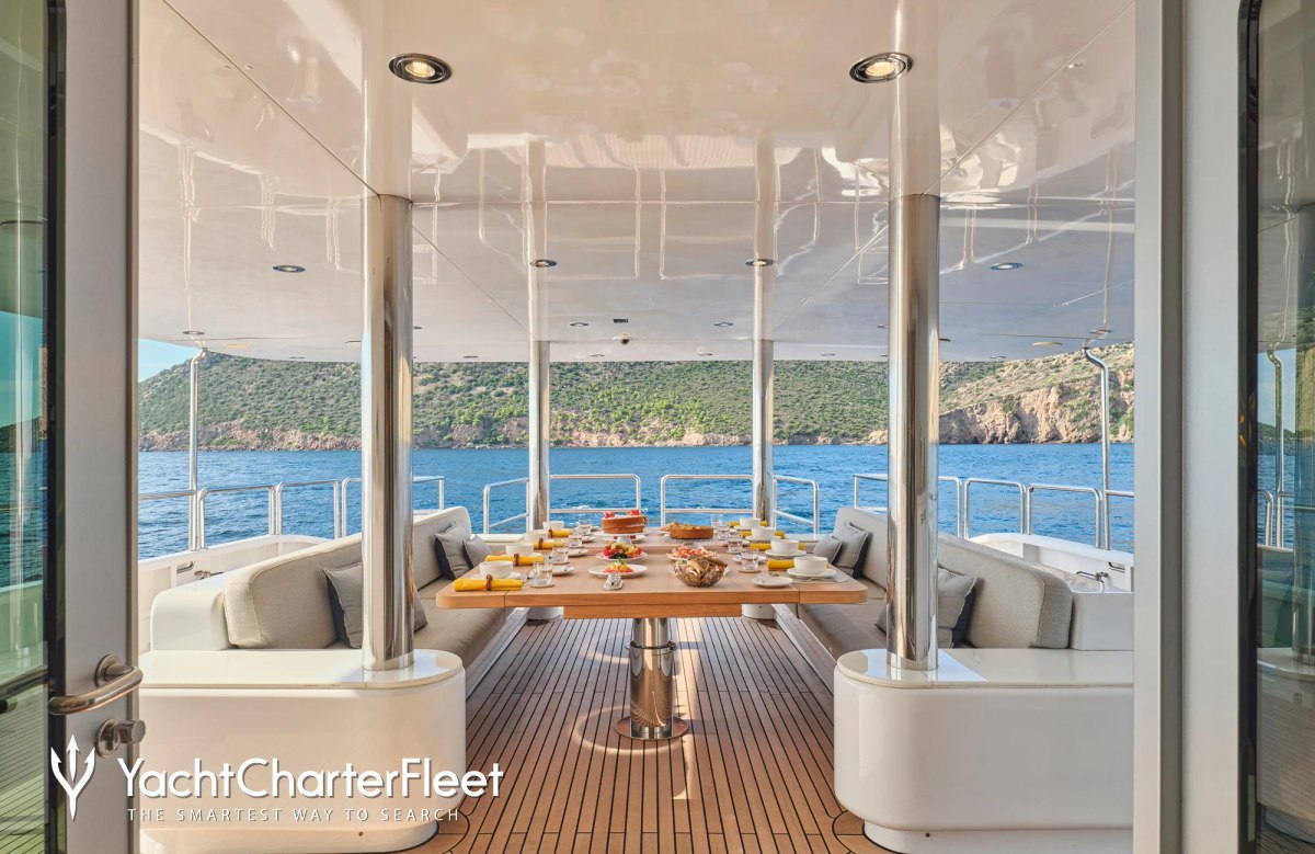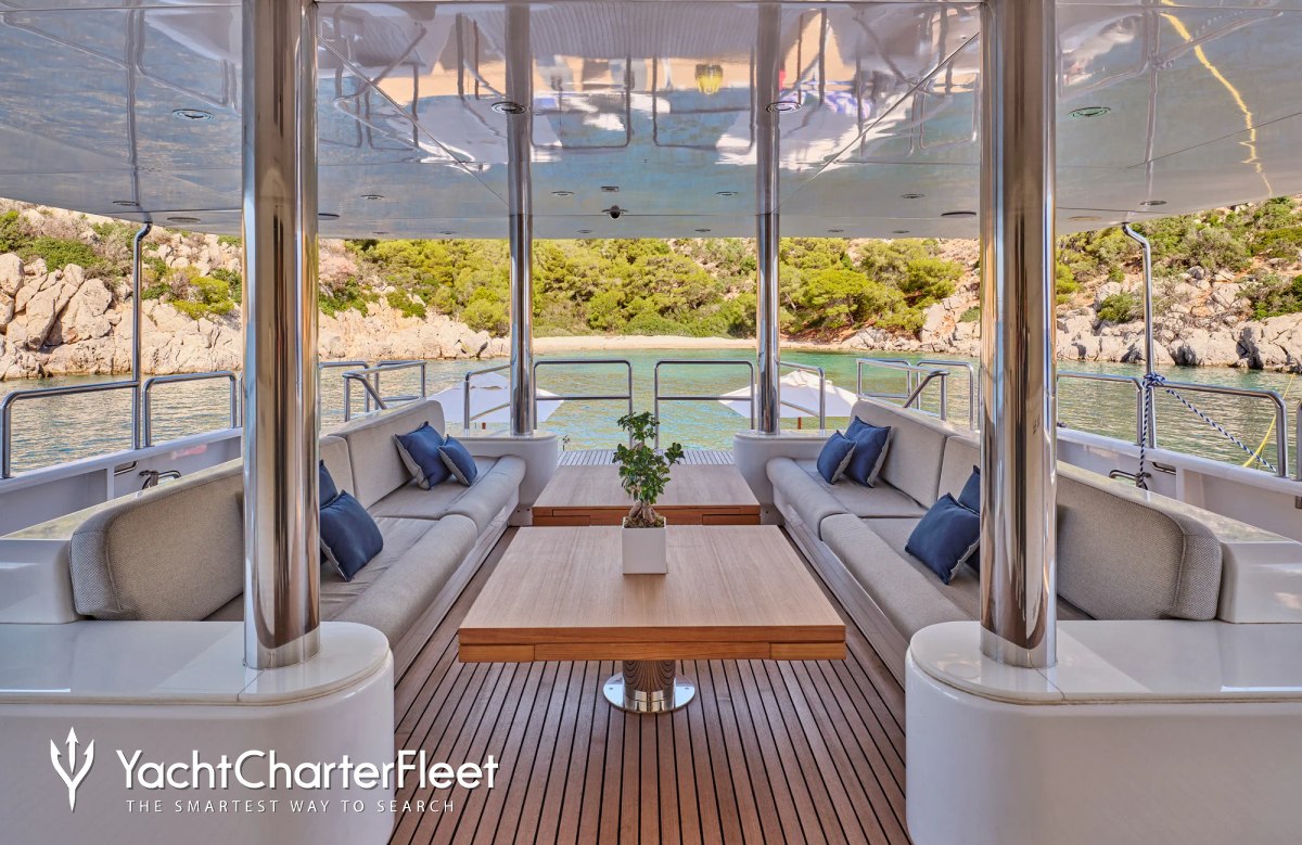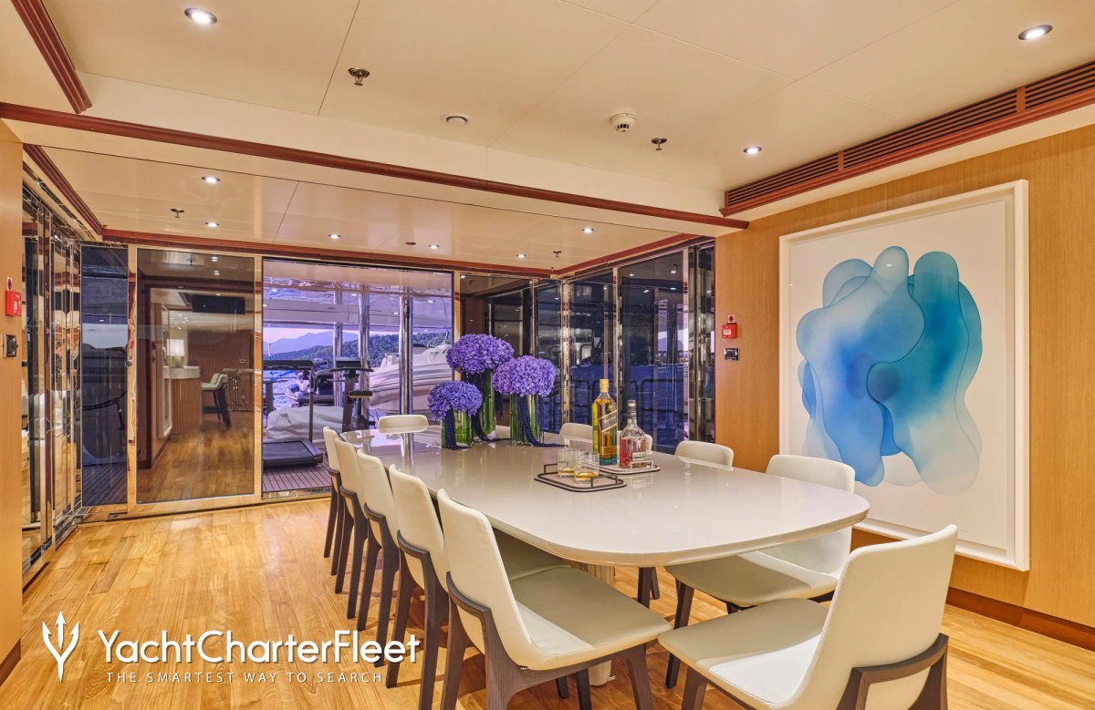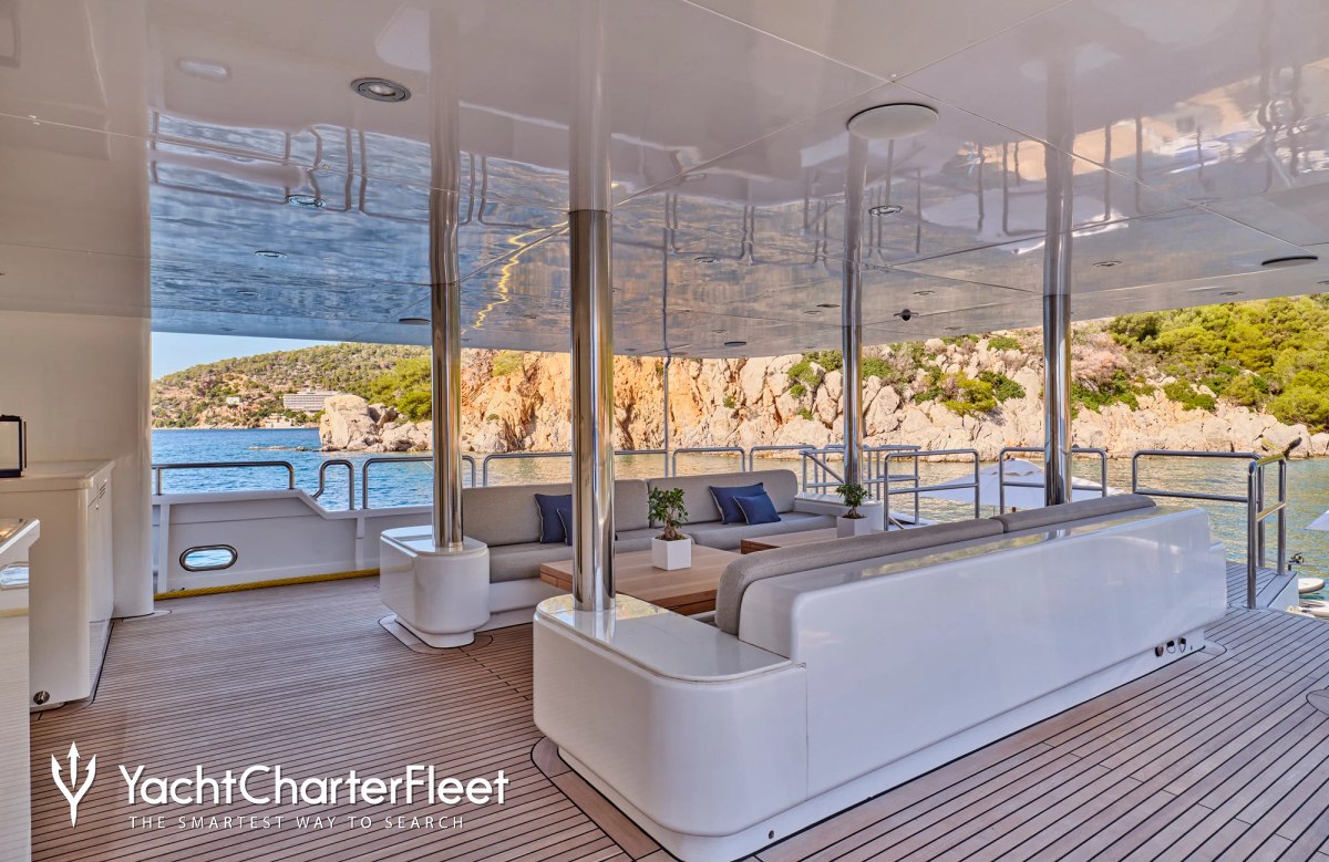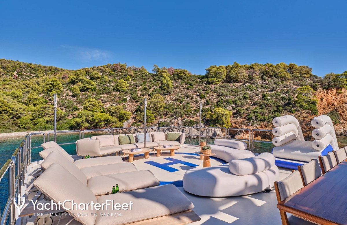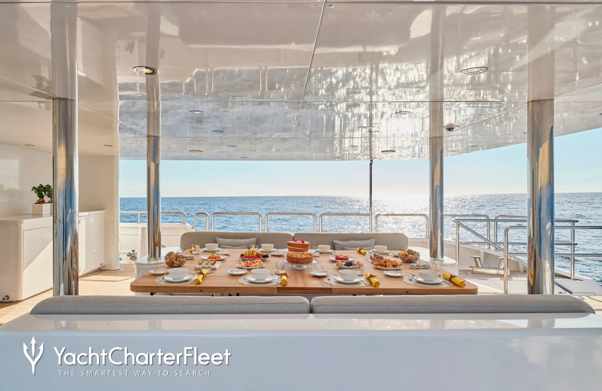 From bow to stern, Sojo is brimming with an fantastic array of social and dining areas, both inside and out, making her the ideal yacht for relaxing and entertaining whilst on charter.