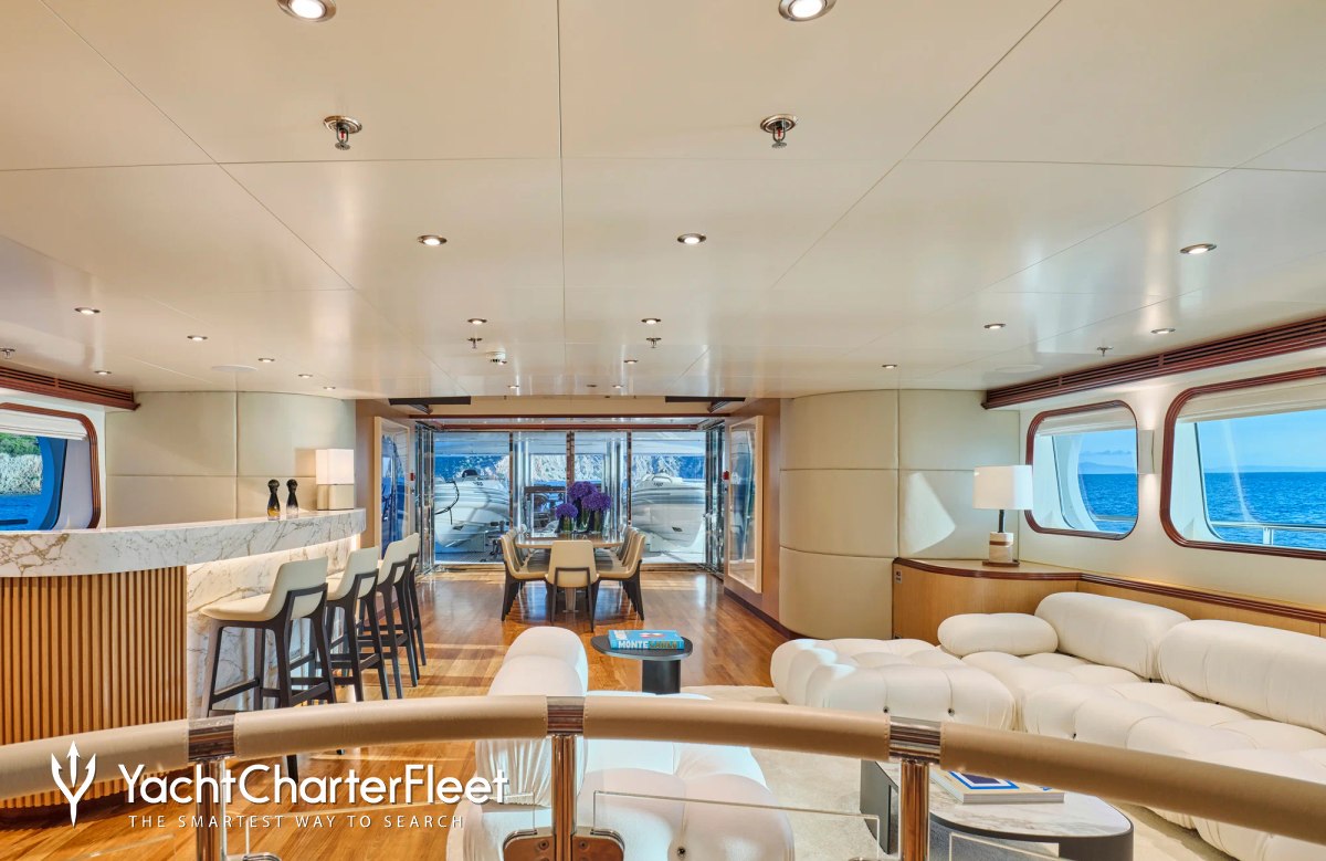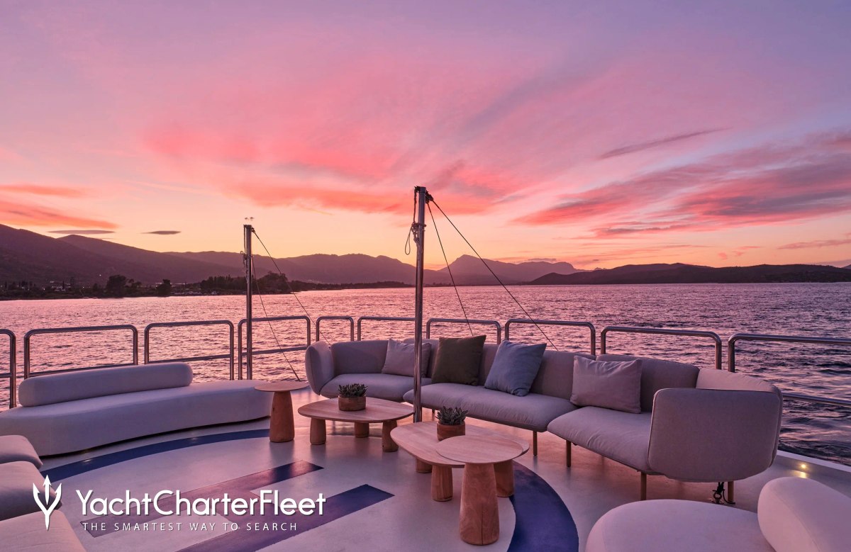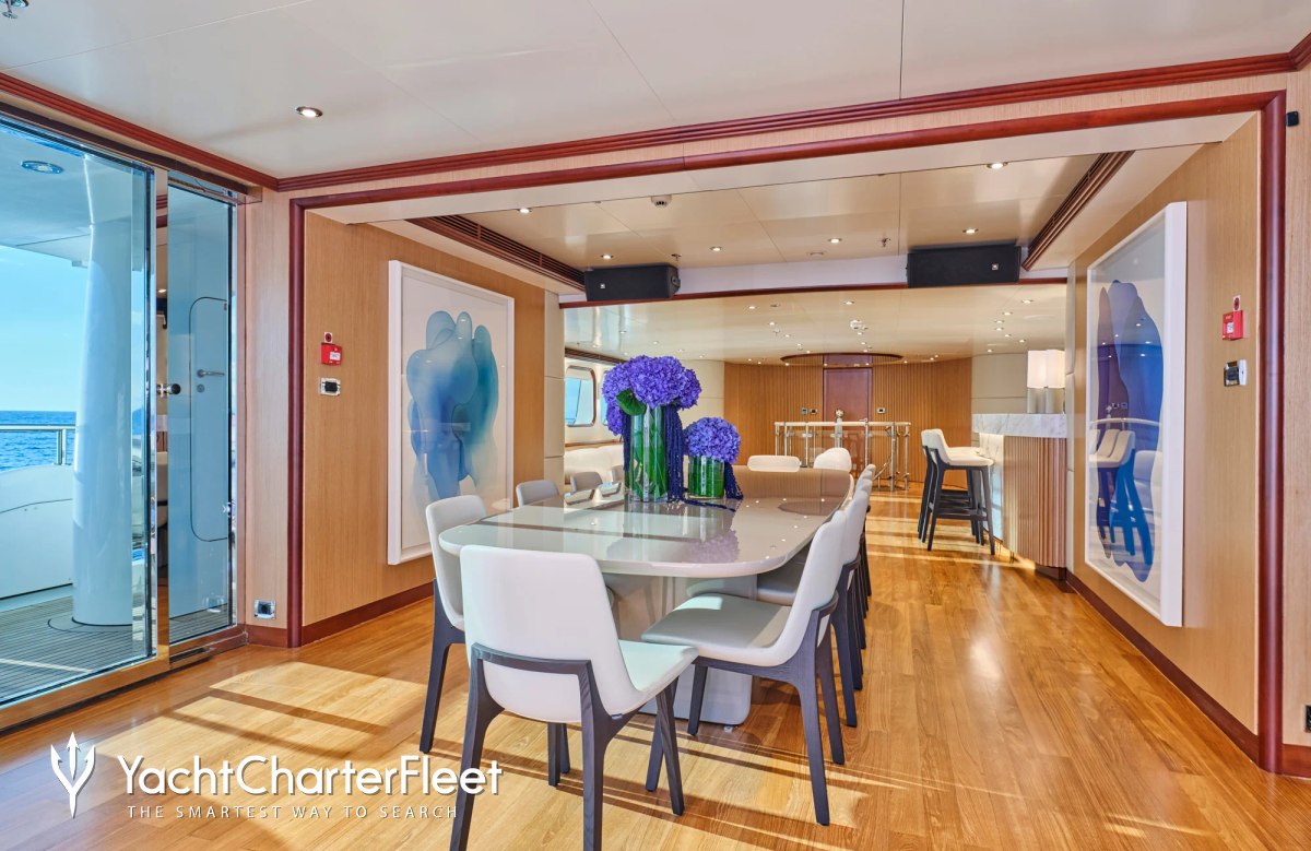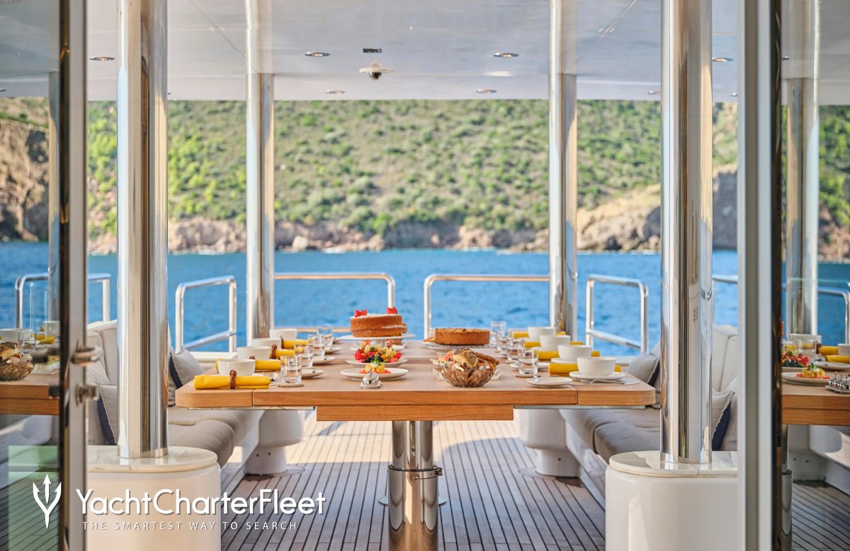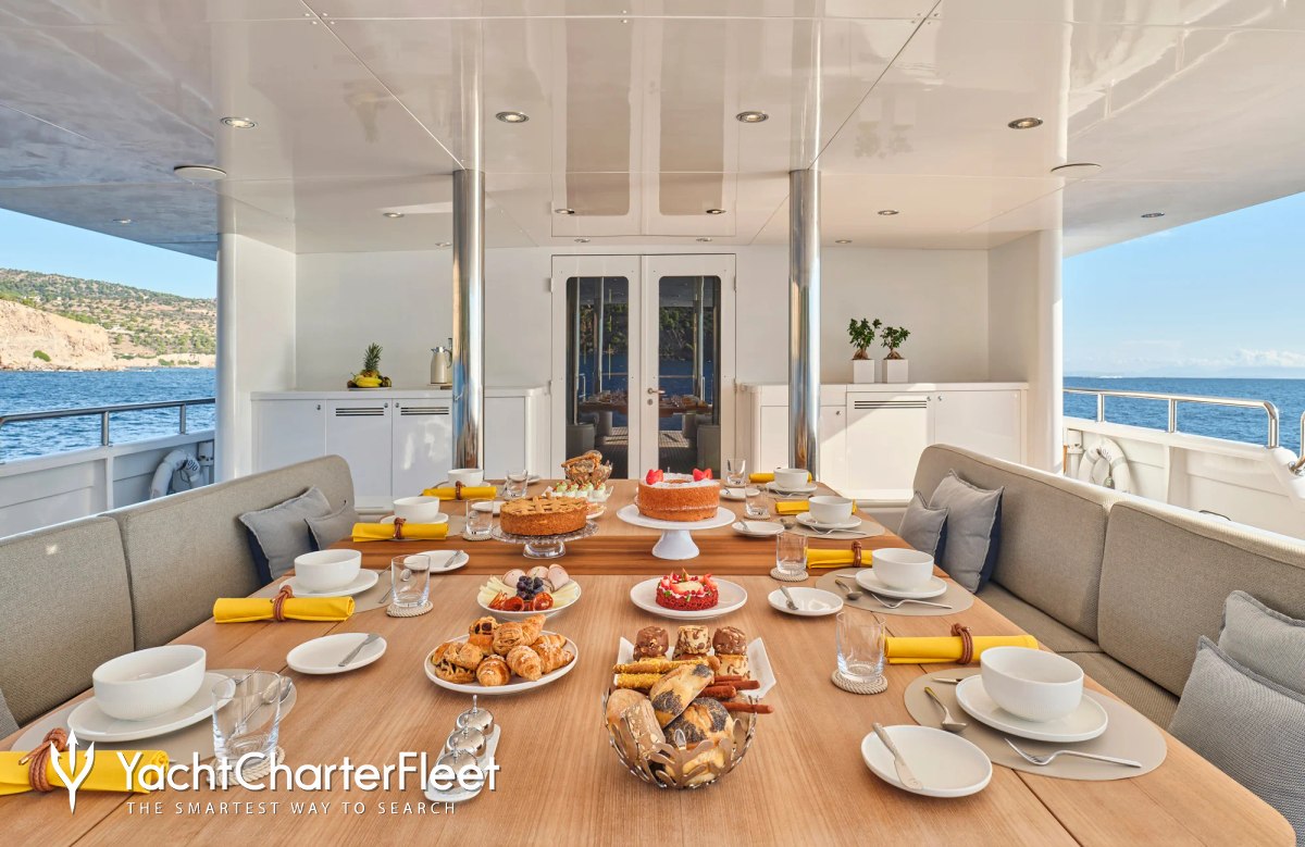 From bow to stern, Sojo is brimming with an fantastic array of social and dining areas, both inside and out, making her the ideal yacht for relaxing and entertaining whilst on charter.