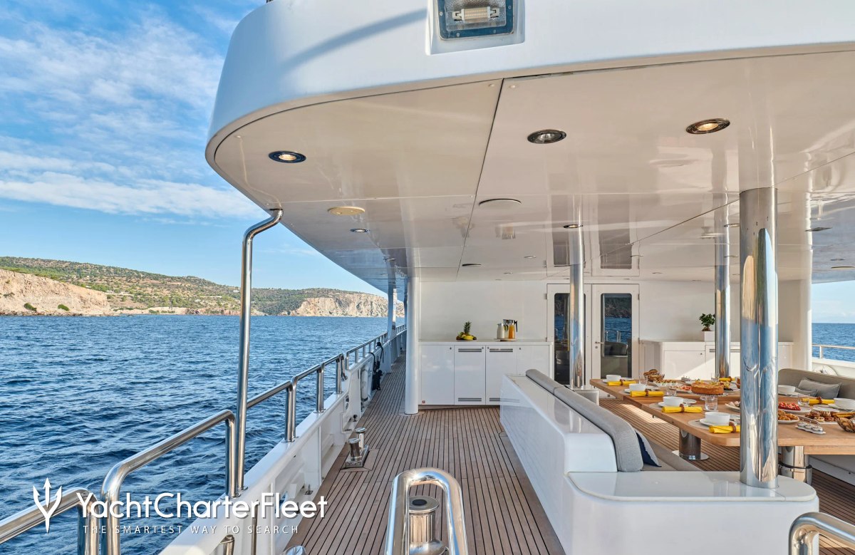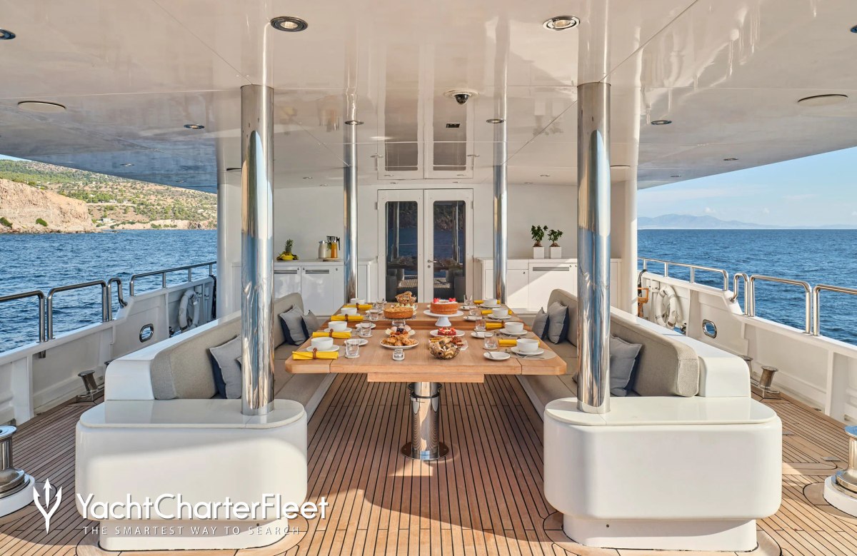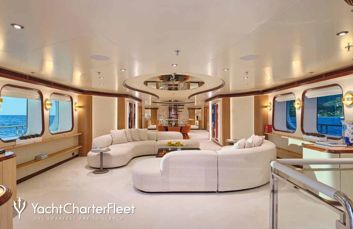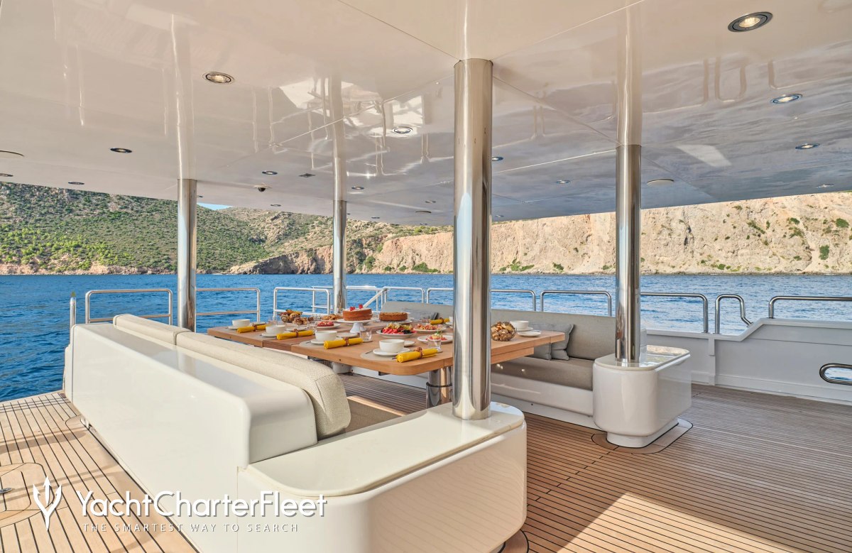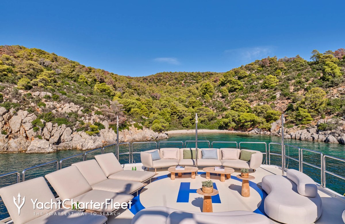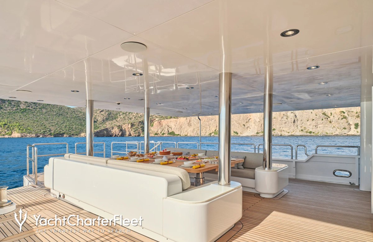 From bow to stern, Sojo is brimming with an fantastic array of social and dining areas, both inside and out, making her the ideal yacht for relaxing and entertaining whilst on charter.