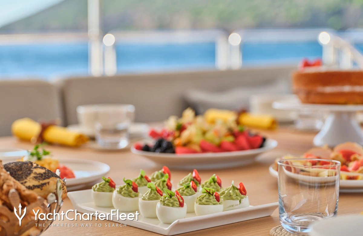 Sojo benefits from some excellent features to improve your charter including the underwater lights, adding spectacle and style after dark. Take advantage of the on board Wi-Fi and stay connected at all times and in addition you can stay comfortable on board whatever the weather, with air conditioning during your charter.