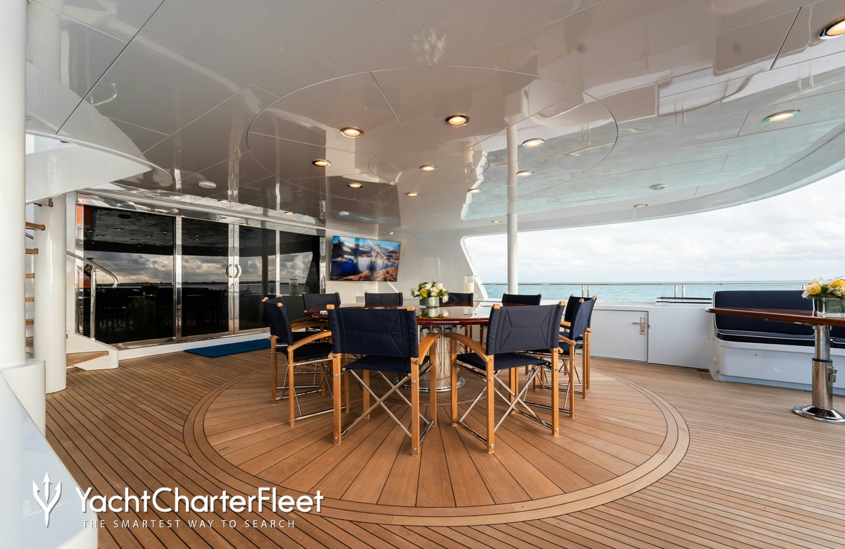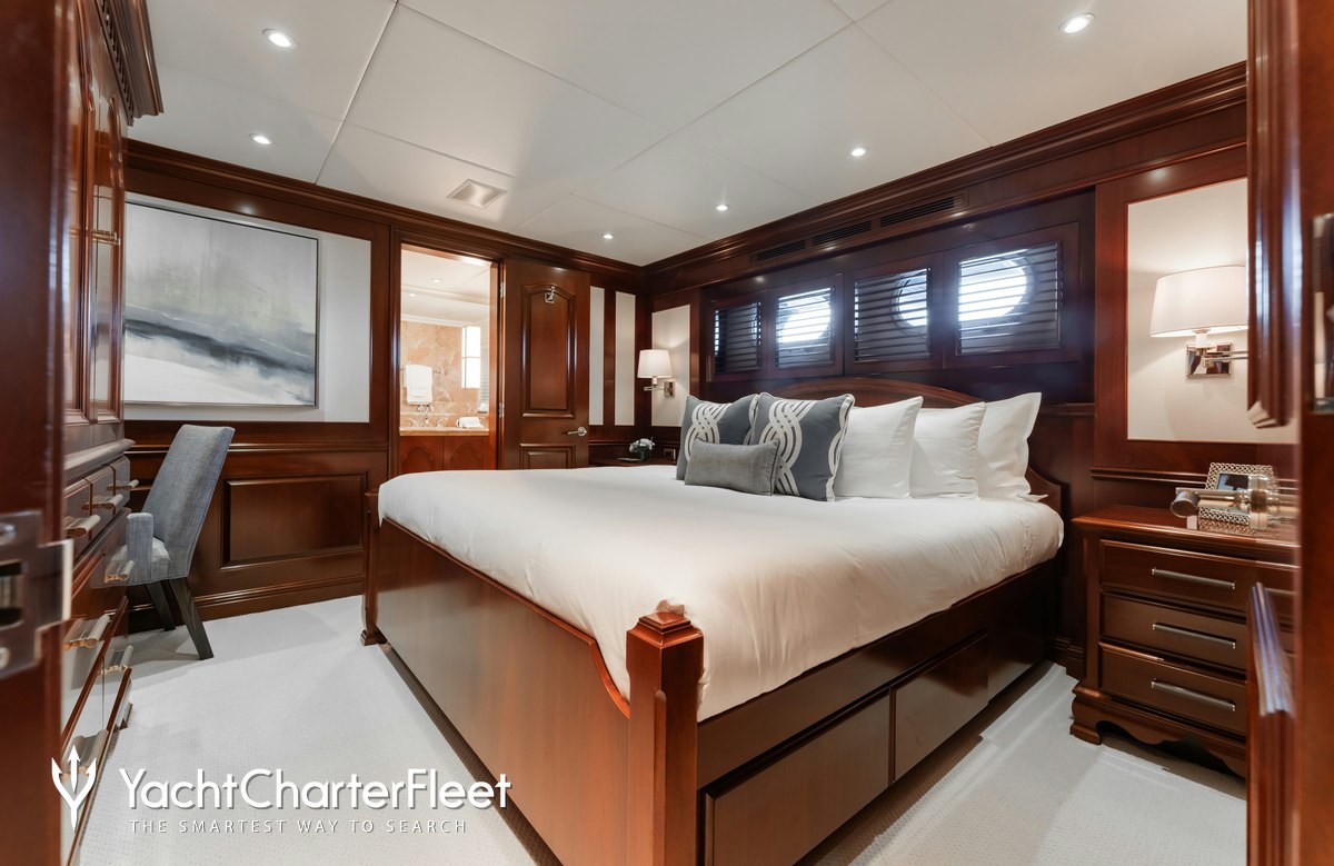 Families will particularly love SummerDance thanks to her child-friendly setup. Built in 2004, She offers guest accommodation for up to 12 guests with a layout comprising a master suite located on the main deck, two VIP cabins, one double cabin and one twin cabin. There are 8 beds in total, including 3 king, 1 queen, 2 singles and 2 pullmans. She is also capable of carrying up to 8 crew onboard to ensure a relaxed luxury yacht charter experience.