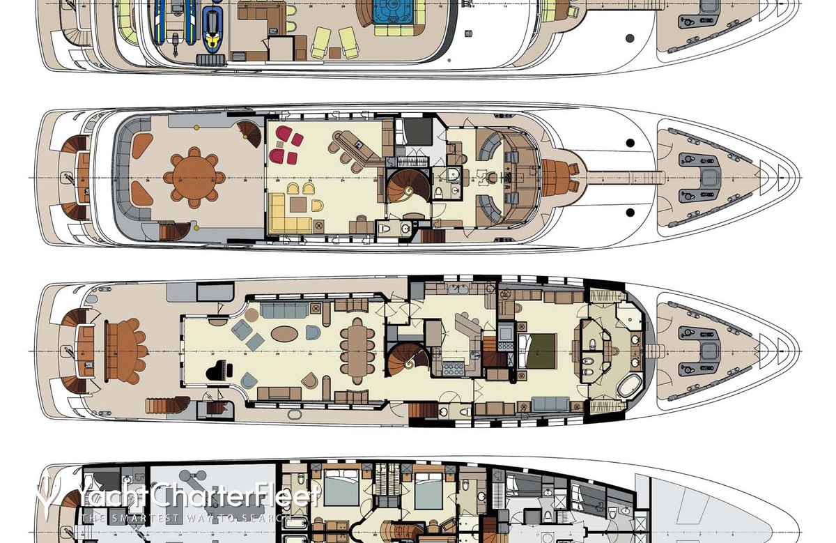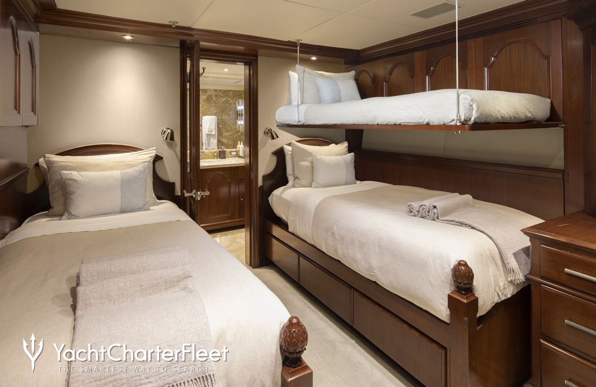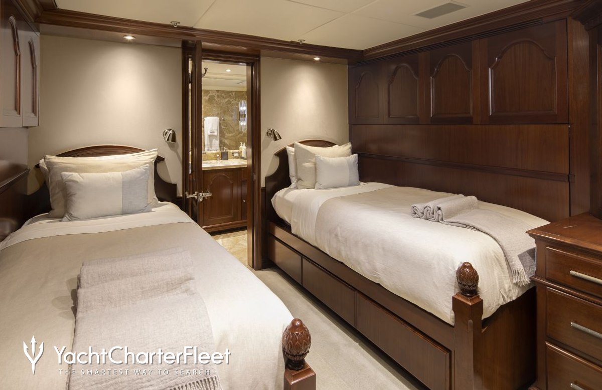 SummerDance is great for families thanks to her child-friendly setup. Built in 2004, She offers guest accommodation for up to 12 guests with a layout comprising a master suite located on the main deck, two VIP cabins, one double cabin and one twin cabin. There are 8 beds in total, including 3 king, 1 queen, 2 singles and 2 pullmans. She is also capable of carrying up to 8 crew onboard to ensure a relaxed luxury yacht charter experience.