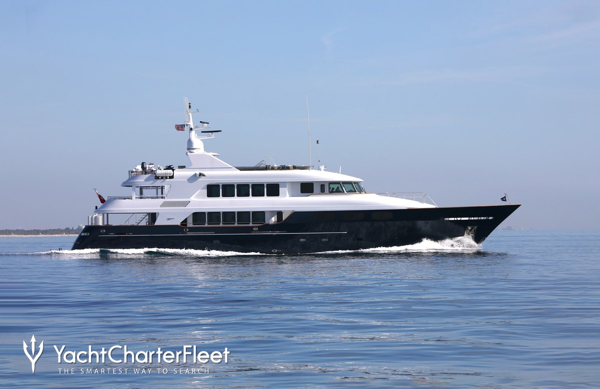 Built with a aluminium hull and aluminium superstructure, she benefits from a semi-displacement hull to provide exceptional seakeeping and impressive speeds. Powered by twin Caterpillar engines, she comfortably cruises at 15 knots, reaches a maximum speed of 19 knots with a range of up to 2,300 nautical miles from her 38,986 litre fuel tanks at 10 knots. An advanced stabilisation system on board reduces the side-to-side roll of the yacht and promises guests exceptional comfort levels at anchor or when underway.