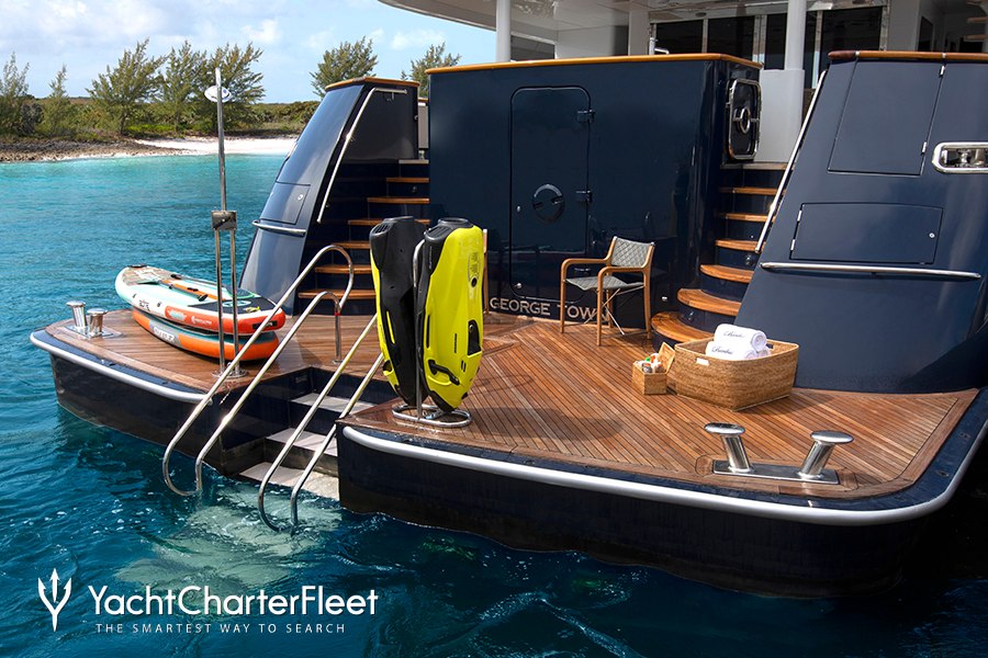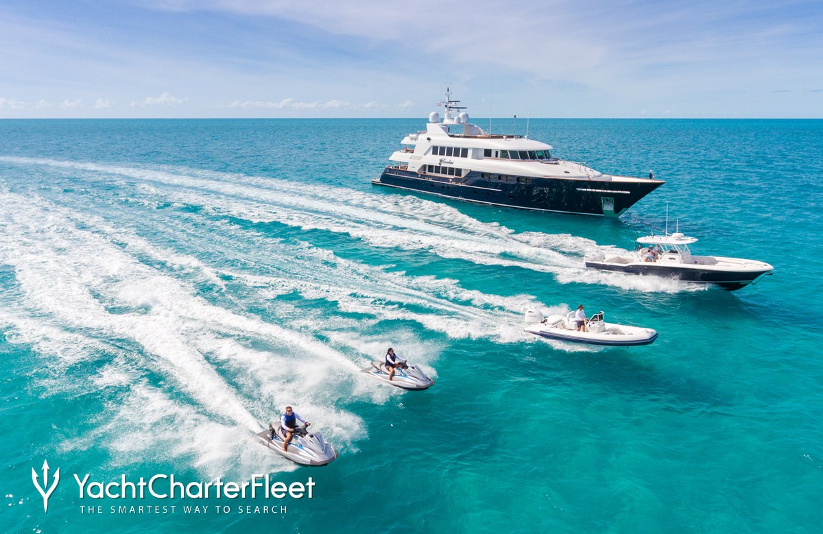 SummerDance knows a thing or two about fun on the water, with a selection of water toys and accessories for you and your guests to enjoy whilst on charter. Take to the sea on a Jet Ski offering you power and control on the water. Another excellent feature are two SEABOBs, that allow you to skim along the surface or steer under the crystal water and see a variety of aquatic sea life. Also there are three wakeboards so guests can show off at speed. If that isn't enough SummerDance also features fishing equipment, beach games, paddleboards and snorkelling equipment. SummerDance also sports a 10.67m/35' Boston Whaler Tender to transport you with ease.