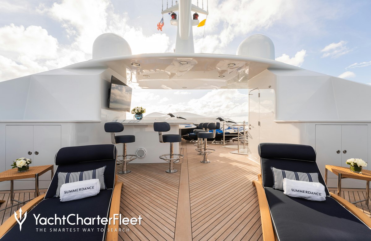 Showcasing meticulous craftsmanship coupled with high-end luxurious finishes, motor yacht SummerDance certainly has the "wow" factor, along with state-of-the-art amenities and array of water toys, promising truly unforgettable yacht charters for even the most discerning guests.