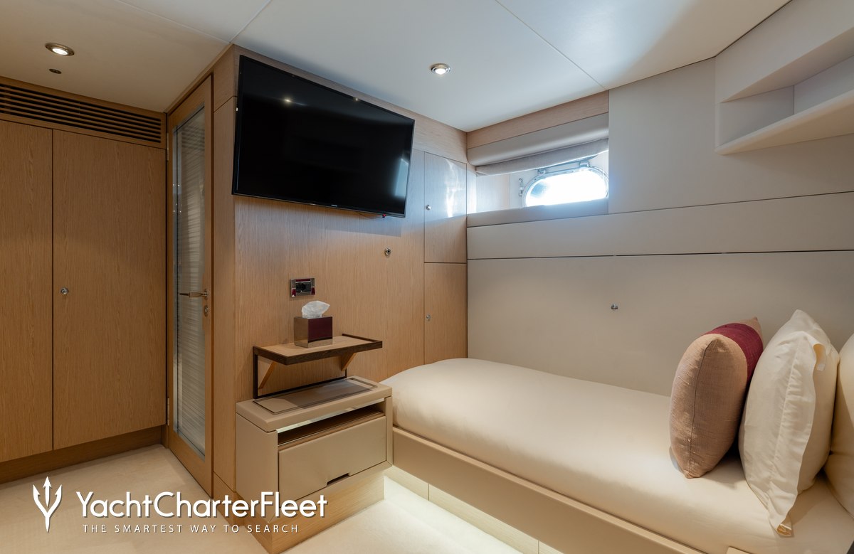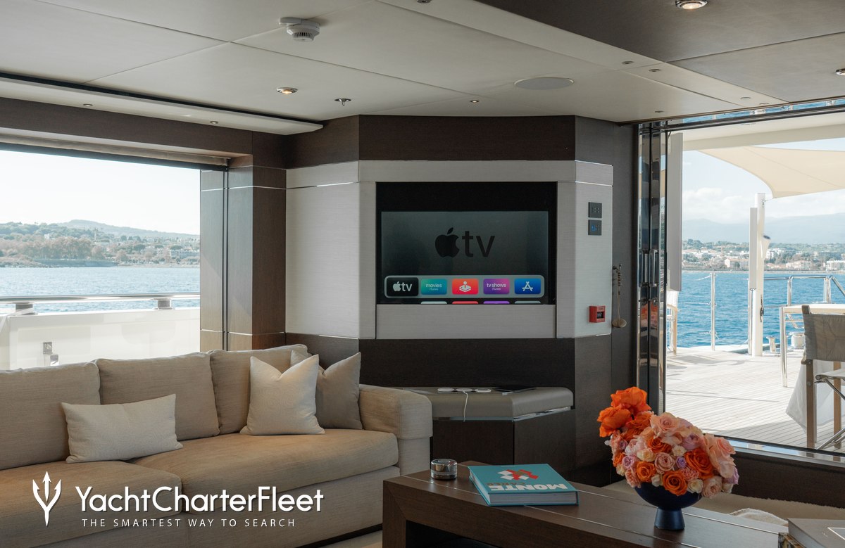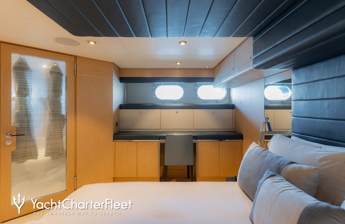 Whatever your activities on your charter, you'll find some impressive features are seamlessly integrated to help you, particularly satellite communications, keeping you connected on any voyage. With Wi-Fi connectivity you don't have to lose contact with the outside world, unless you want to and in addition guests will experience complete comfort while chartering thanks to air conditioning.