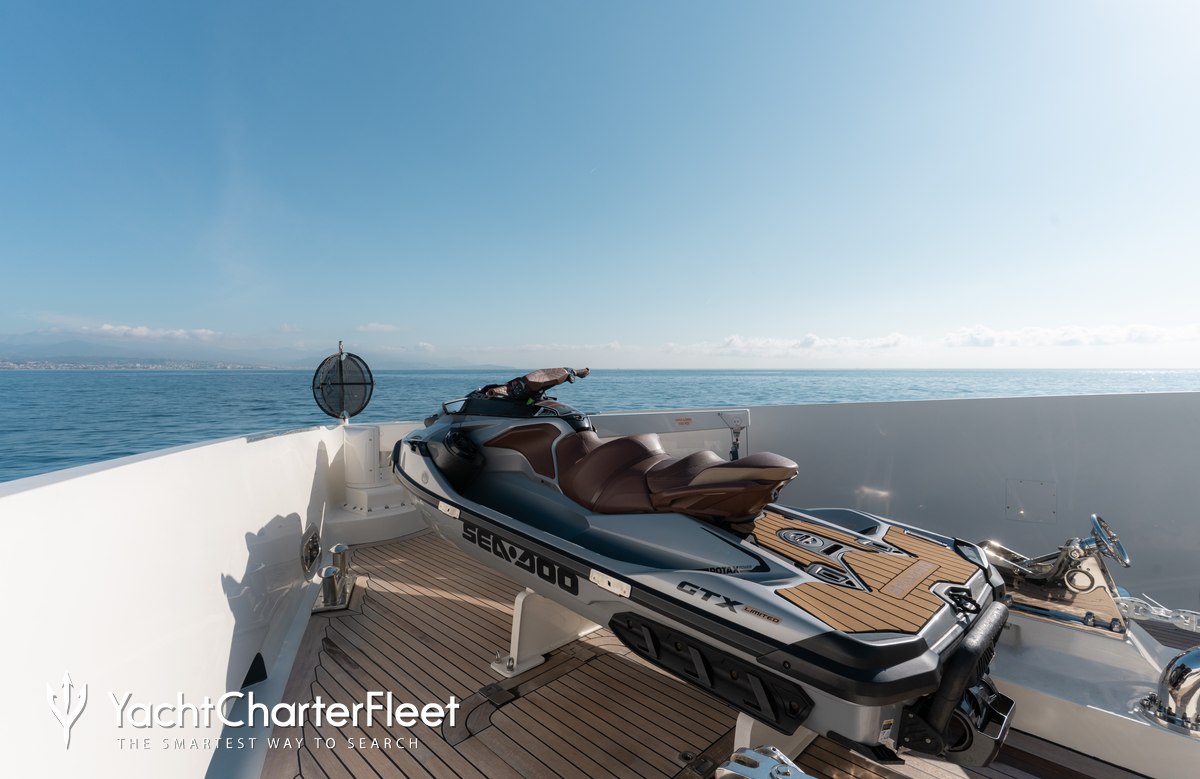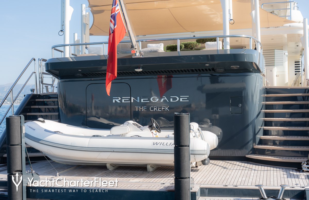 Onboard Renegade has a range of toys and accessories to keep you and your guests entertained on the water throughout your stay. Principle among these is a waterslides letting guests speed from the sun deck to the water in seconds. Take to the sea on a Jet Ski offering you power and control on the water. Also there are two Seabob F5S SEABOBs, that allow you to skim along the surface or steer under the crystal water and see a variety of aquatic sea life. If that isn't enough Renegade also features fishing equipment, beach games, paddleboards and snorkelling equipment. Renegade features two tenders, but leading the pack is a Magazzù Tender to transport you in style.