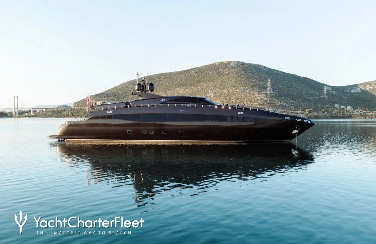 Built with a aluminium hull and aluminium superstructure, she has impressive speed and great efficiency thanks to her planing hull. Powered by twin MTU engines, she comfortably cruises at 23 knots, reaches a maximum speed of 28 knots with a range of up to 1,000 nautical miles from her 35,000 litre fuel tanks at 21 knots. Her low draft of 2m/6'7" makes her primed for accessing shallow areas and cruising close to the shorelines. An advanced stabilisation system on board reduces the side-to-side roll of the yacht and promises guests exceptional comfort levels at anchor or when underway.