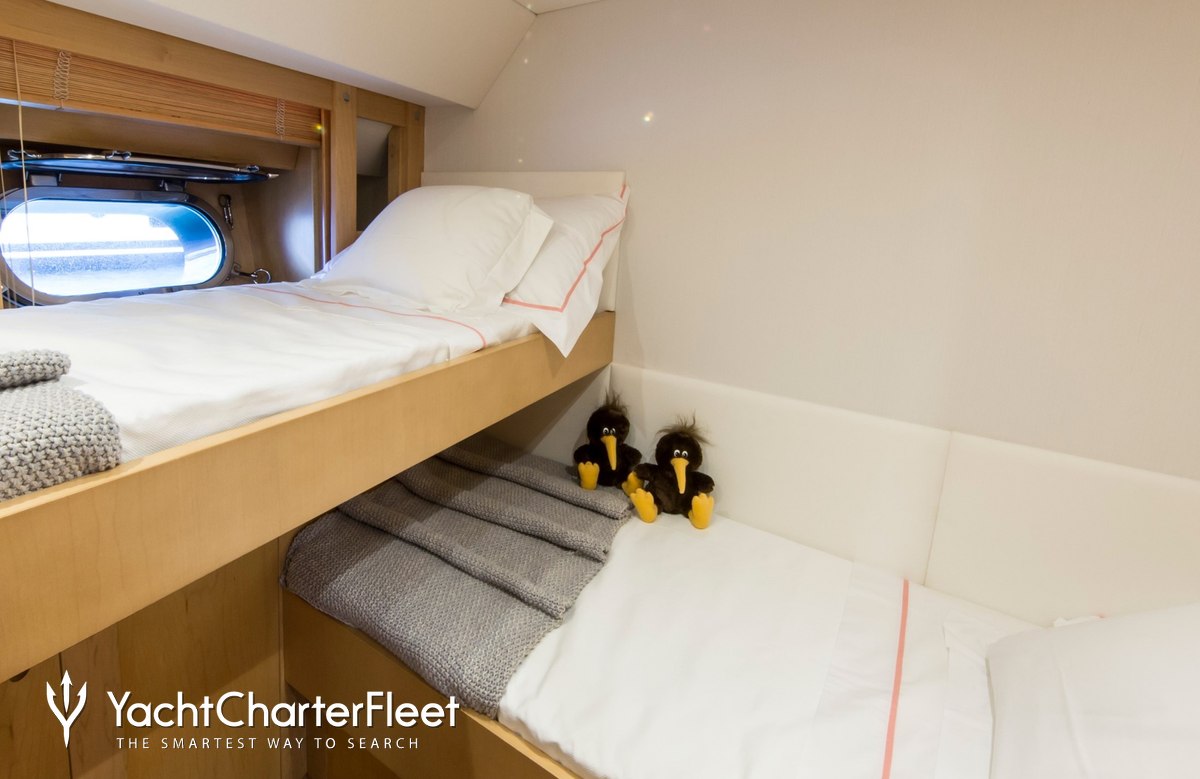 Built in 1993, Imagine B offers guest accommodation for up to 7 guests in 3 suites comprising a master suite, one double cabin and one twin cabin. She is also capable of carrying up to 5 crew onboard to ensure a relaxed luxury yacht charter experience.