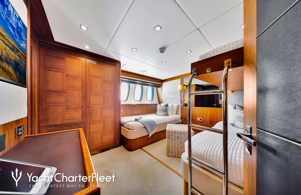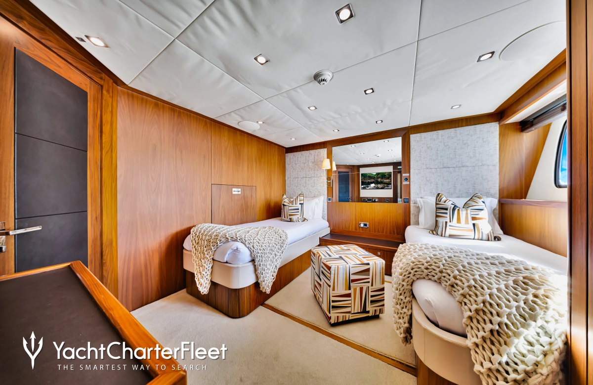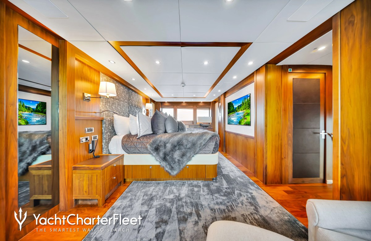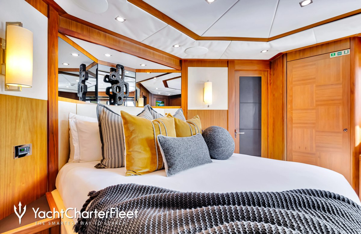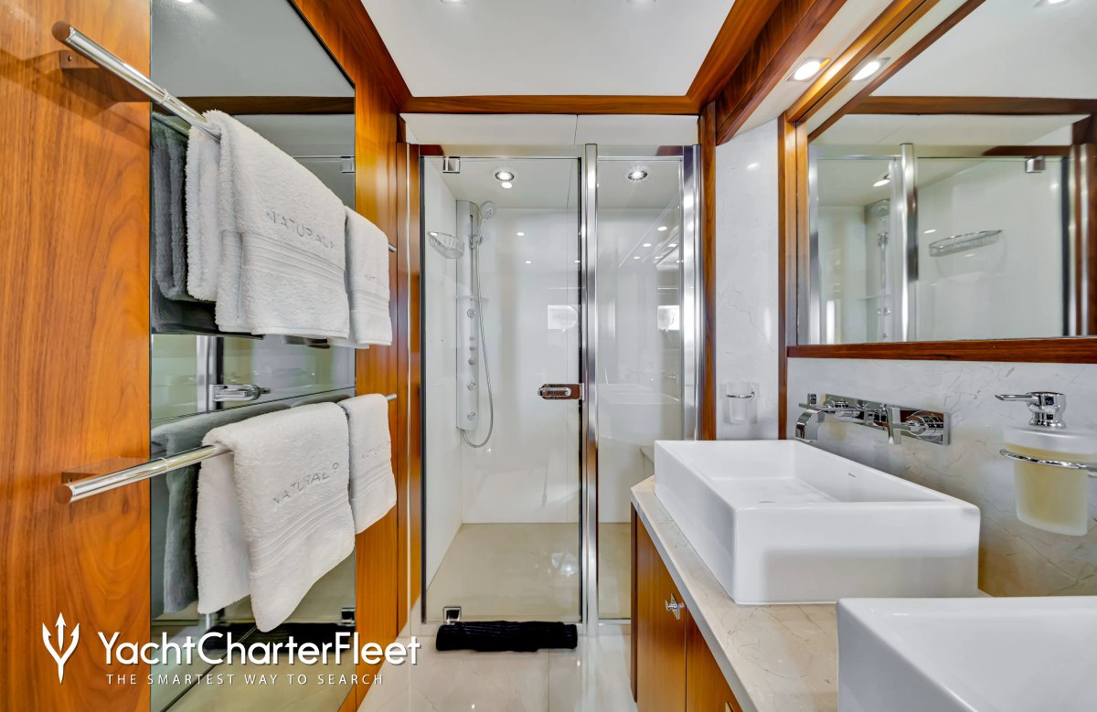 Families will particularly love Natural 9 thanks to her child-friendly setup. She offers guest accommodation for up to 10 guests. There are 8 beds in total, including 1 king, 2 queen, 4 singles and 1 pullman. She is also capable of carrying up to 7 crew onboard to ensure a relaxed luxury yacht charter experience.