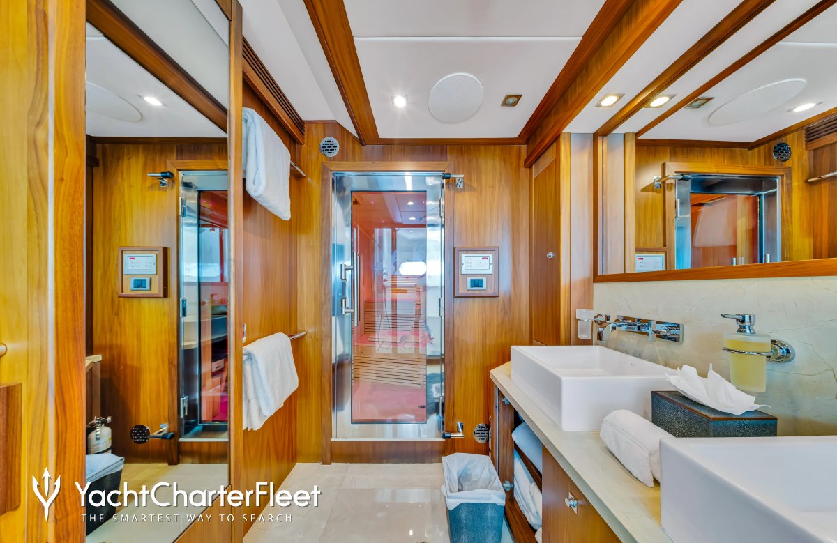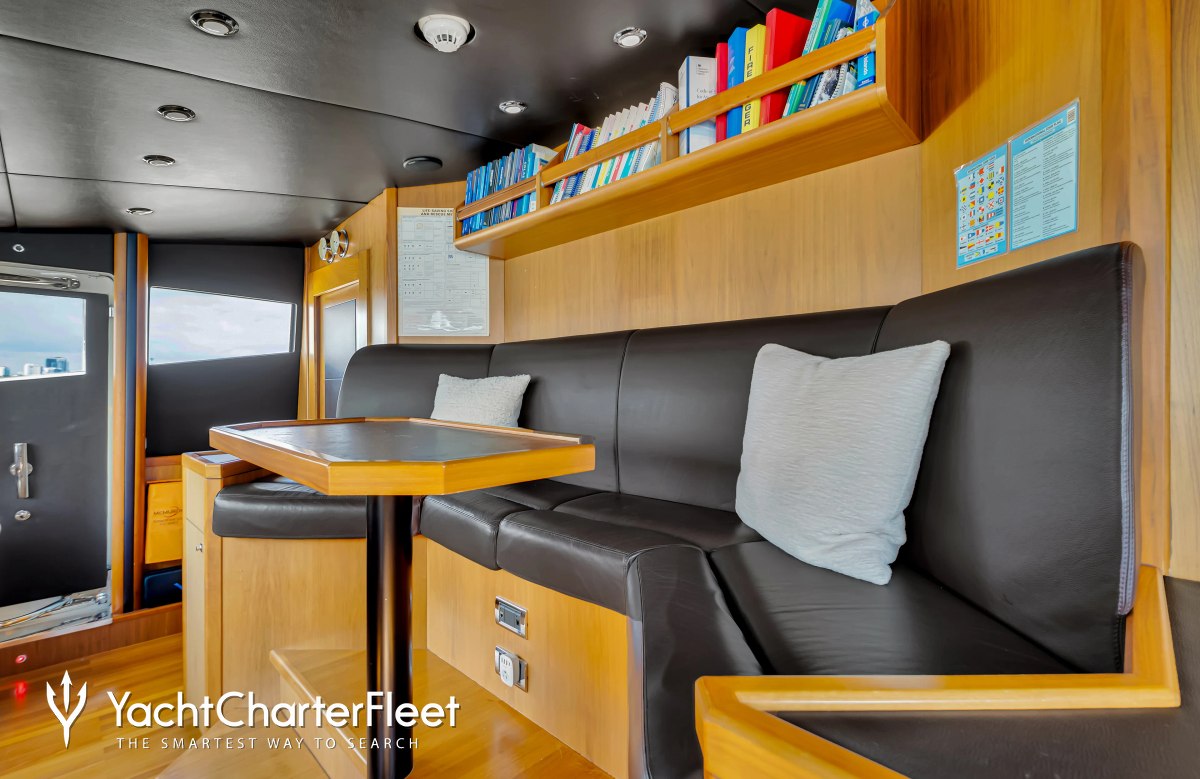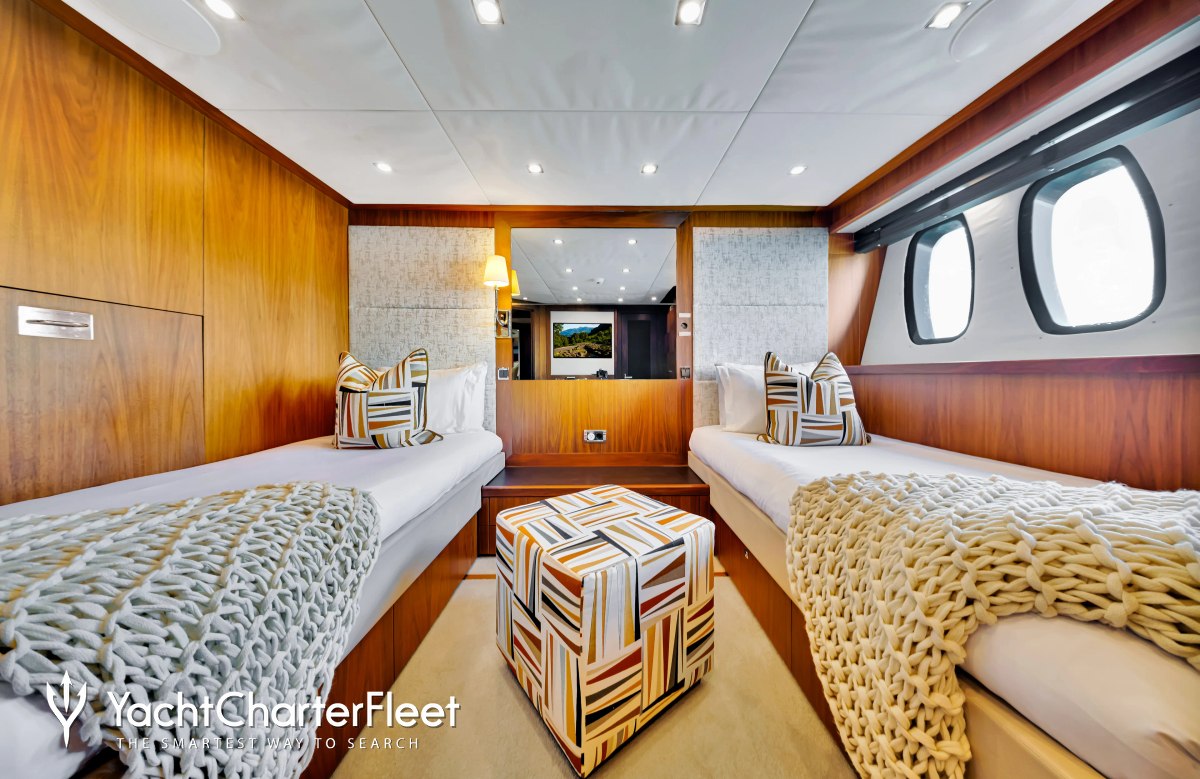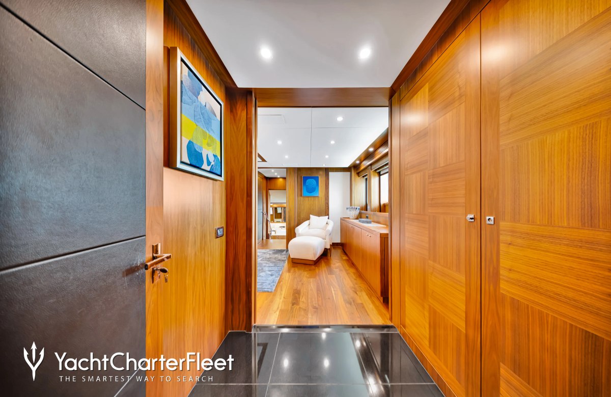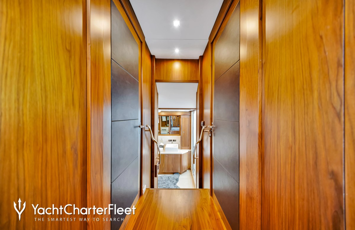 Families will particularly love Natural 9 thanks to her child-friendly setup. She offers guest accommodation for up to 10 guests. There are 8 beds in total, including 1 king, 2 queen, 4 singles and 1 pullman. She is also capable of carrying up to 7 crew onboard to ensure a relaxed luxury yacht charter experience.