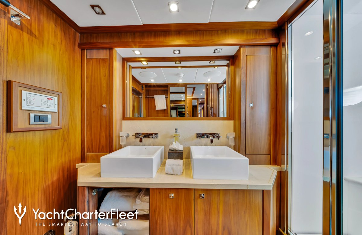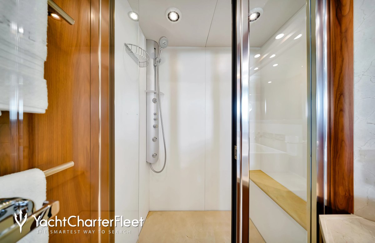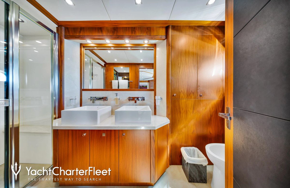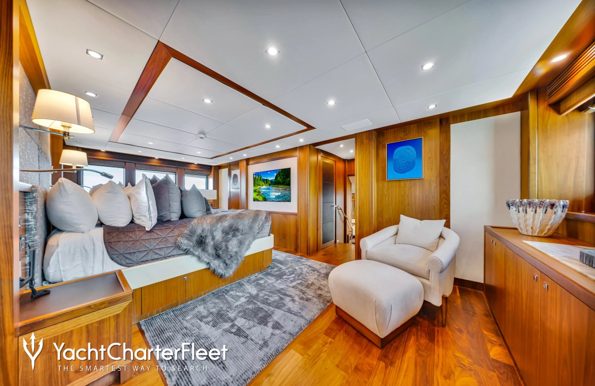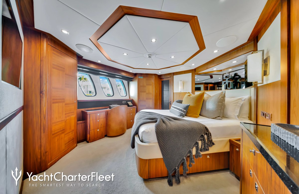Families will particularly love Natural 9 thanks to her child-friendly setup. She offers guest accommodation for up to 10 guests. There are 8 beds in total, including 1 king, 2 queen, 4 singles and 1 pullman. She is also capable of carrying up to 7 crew onboard to ensure a relaxed luxury yacht charter experience.