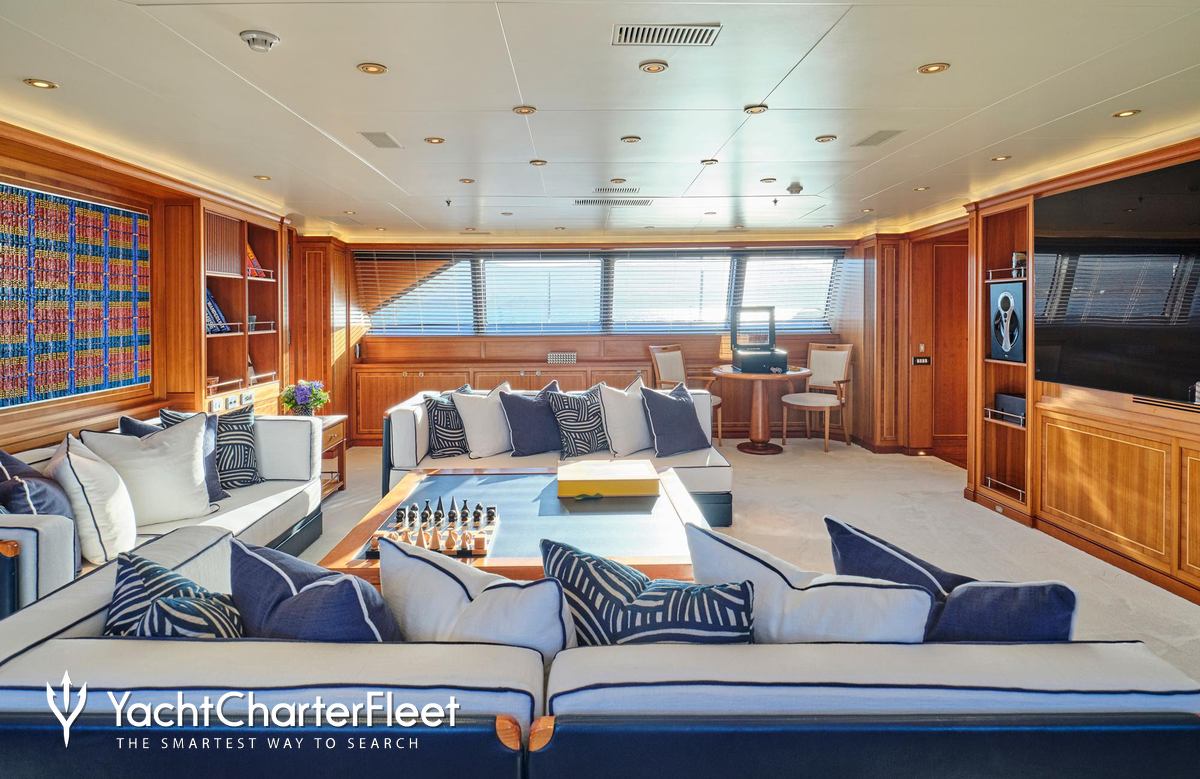 Built in 2003, Burrasca offers guest accommodation for up to 12 guests in 6 suites comprising a master suite, two double cabins and two twin cabins. The master suite incorporates its own study and dressing room as well as a his and her bathroom. The bed configuration includes 1 convertible. She is also capable of carrying up to 10 crew onboard to ensure a relaxed luxury yacht charter experience.