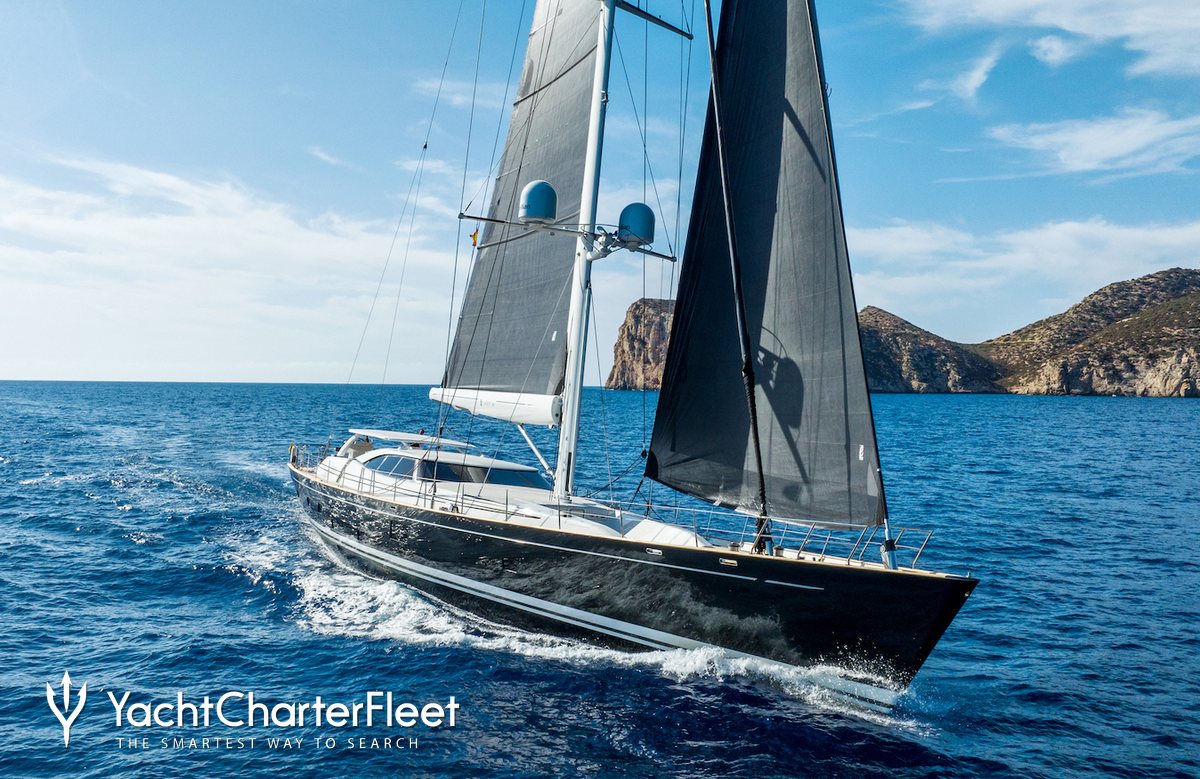 The 38.9m/127'7" sail yacht 'Dakota' (ex. Lady M) by shipyard Fitzroy offers flexible accommodation for up to 10 guests in 4 cabins and features interior styling by British designer RWD.