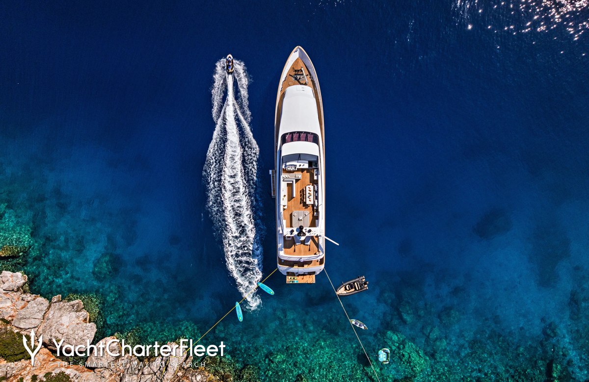 Built in 1998, Nova offers guest accommodation for up to 12 guests in 5 suites comprising a master suite, two double cabins and two twin cabins. She is also capable of carrying up to 7 crew onboard to ensure a relaxed luxury yacht charter experience.