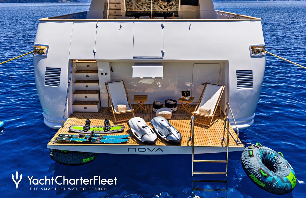 When not cruising Nova has onboard an incredible selection of water toys and accessories for you and your guests to connect with the waters around you. Take to the sea on a Jet Ski offering you power and control on the water. In addition there are waterskis that are hugely entertaining whether you are a beginner or a seasoned pro. Also there are two F9 SEABOBs, that allow you to skim along the surface or steer under the crystal water and see a variety of aquatic sea life. If that isn't enough Nova also features wakeboards, kayaks, fishing equipment, paddleboards and snorkelling equipment. Nova also sports a Grand Tender to transport you with ease.