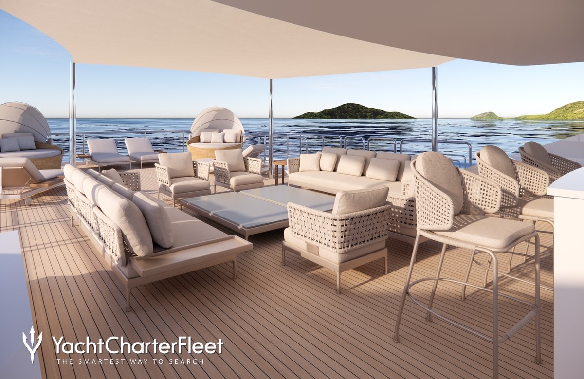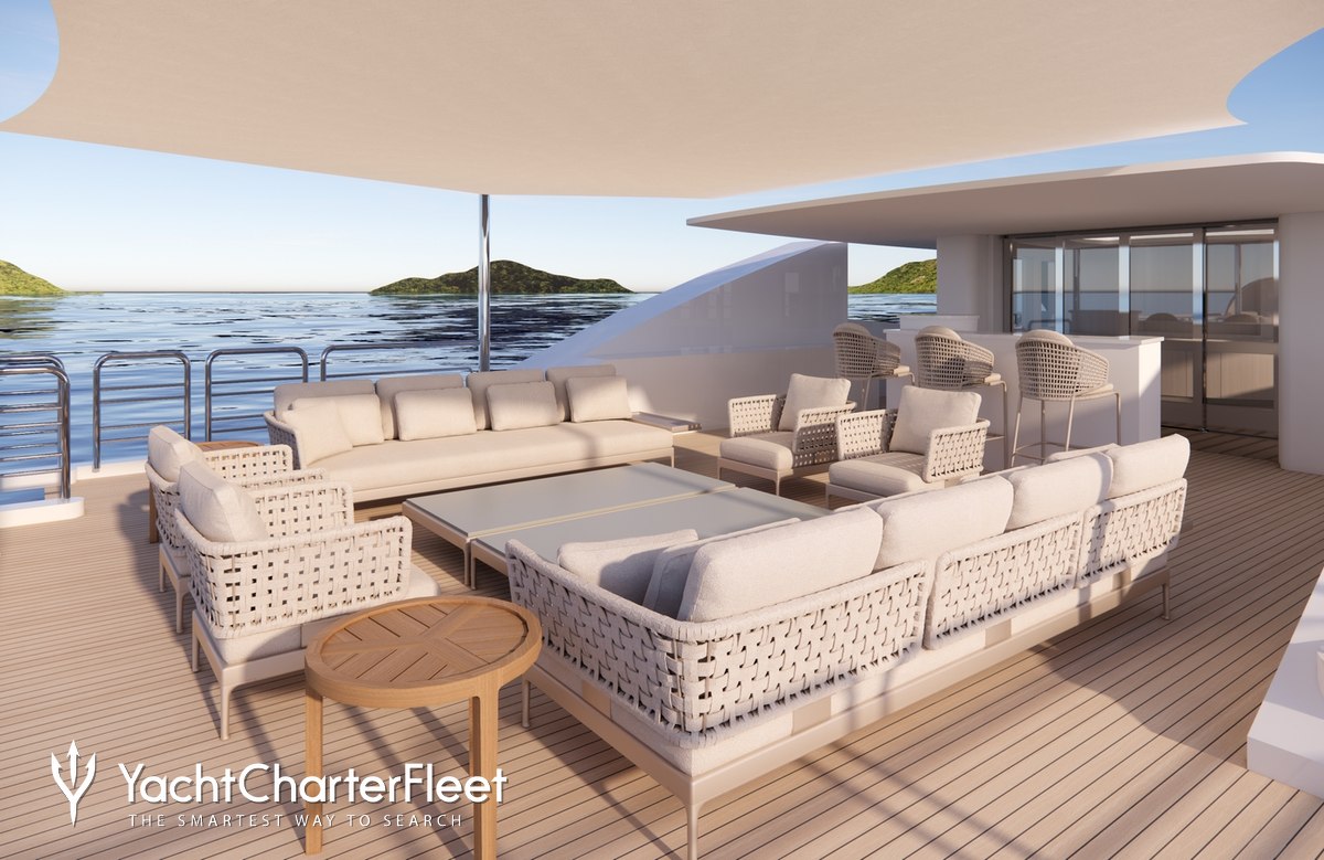 From bow to stern, Eleni is brimming with an fantastic array of social and dining areas, both inside and out, making her the ideal yacht for relaxing and entertaining whilst on charter. She has sensational features such as an elevator and gym.