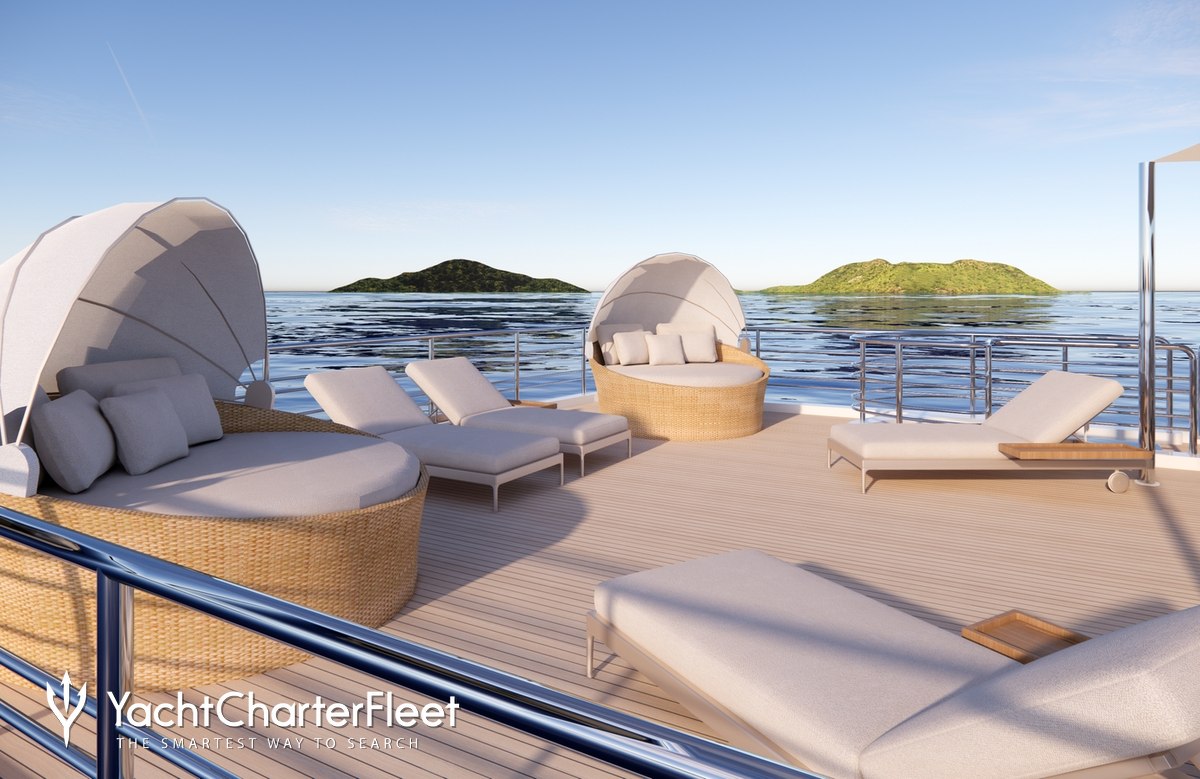 On your charter, you'll find plenty to keep you busy and entertained including a gym with all the latest equipment to maintain your fitness routine. Retreat to the deck jacuzzi and soak up the scenery.