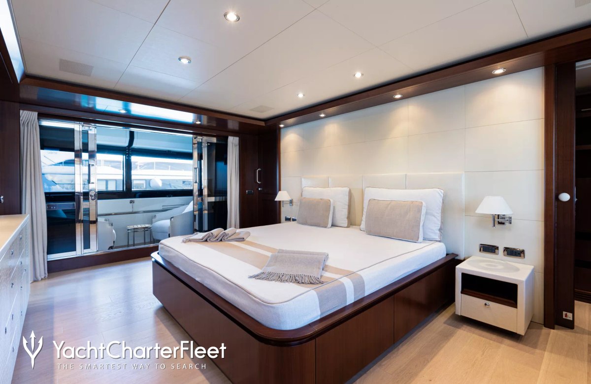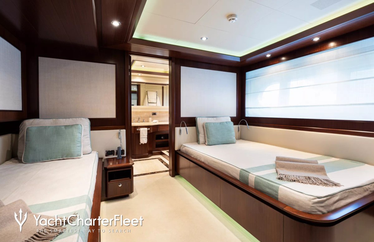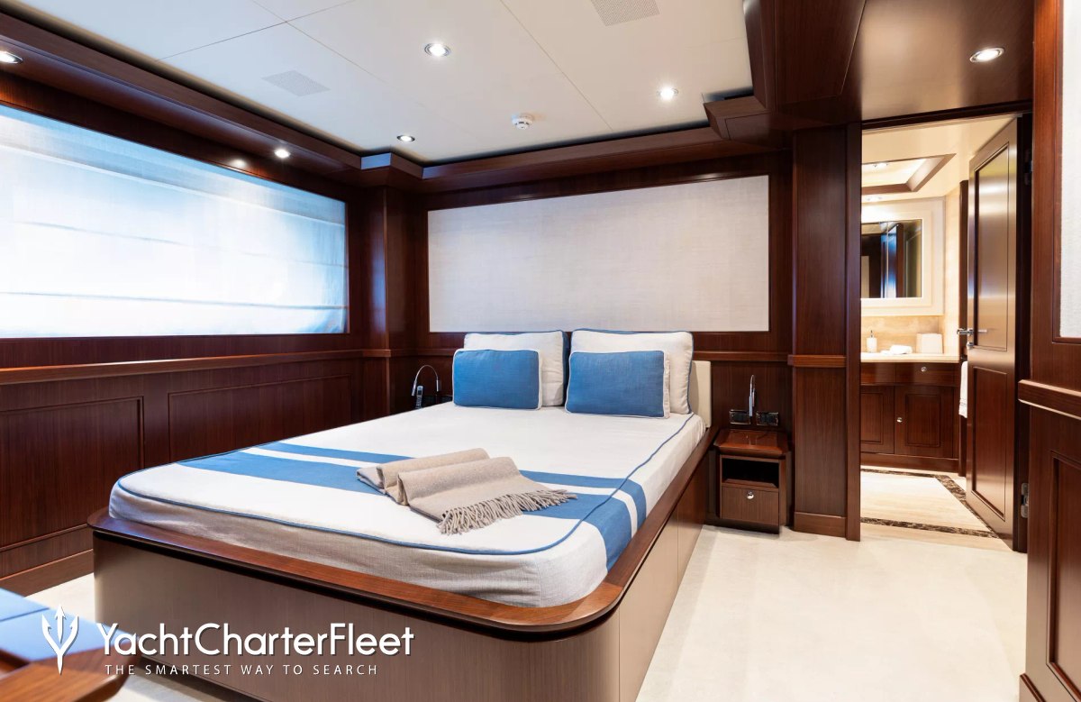 Built in 2013, Palatial offers guest accommodation for up to 12 guests in 5 suites comprising a master suite located on the main deck and four double cabins. The supremely spacious full beam master suite features extensive storage space provided by the dressing room benefits from a his and her bathroom. She is also capable of carrying up to 9 crew onboard to ensure a relaxed luxury yacht charter experience.