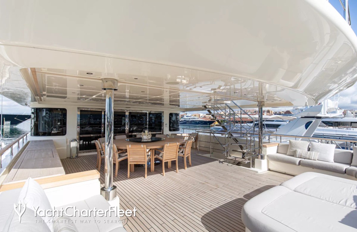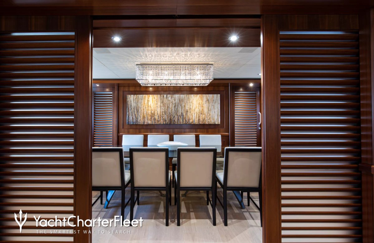 Whatever your activities on your charter, you'll find some impressive features are seamlessly integrated to help you such as an elevator, making any part of the yacht quickly and easily accessible. With Wi-Fi connectivity you don't have to lose contact with the outside world, unless you want to or elsewhere, guests will experience complete comfort while chartering thanks to air conditioning.