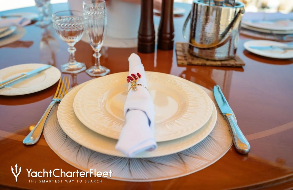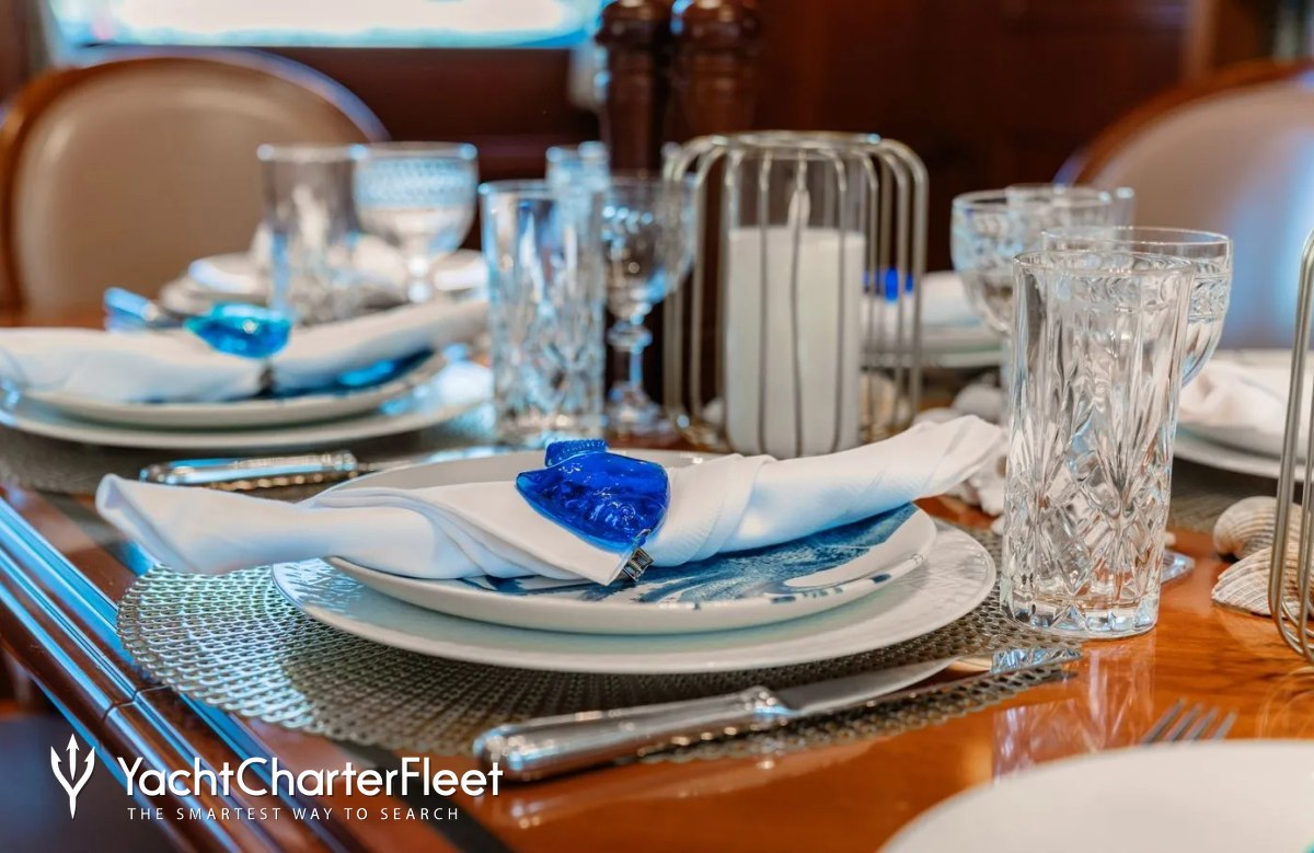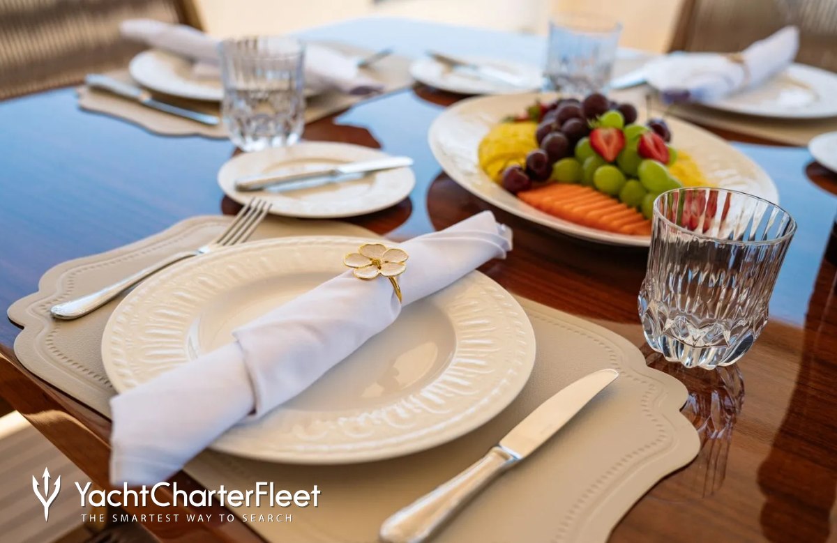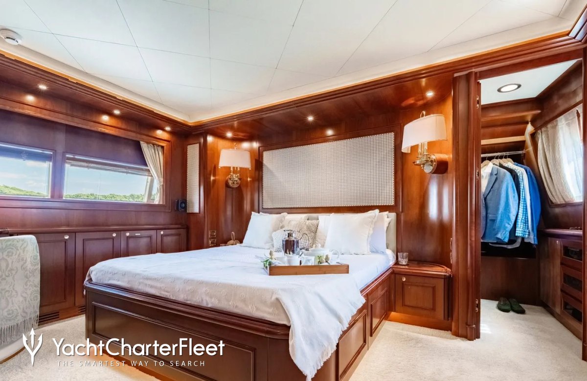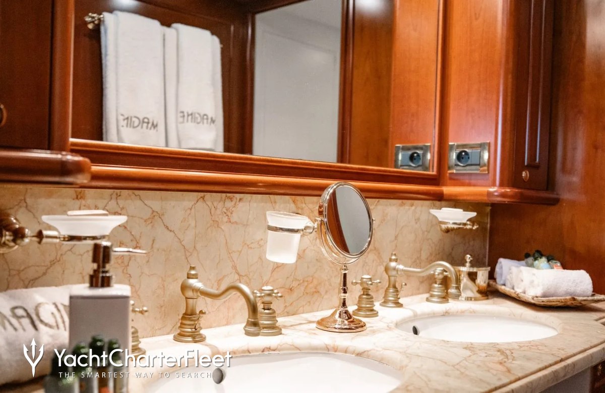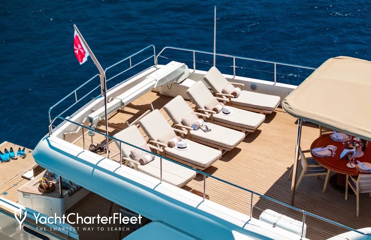 Families will particularly love Imagine thanks to her child-friendly setup. She offers guest accommodation for up to 12 guests with a layout comprising a master suite, one VIP cabin, one double cabin and two twin cabins. There are 9 beds in total, including 3 queen, 4 singles and 2 pullmans. She is also capable of carrying up to 5 crew onboard to ensure a relaxed luxury yacht charter experience.
