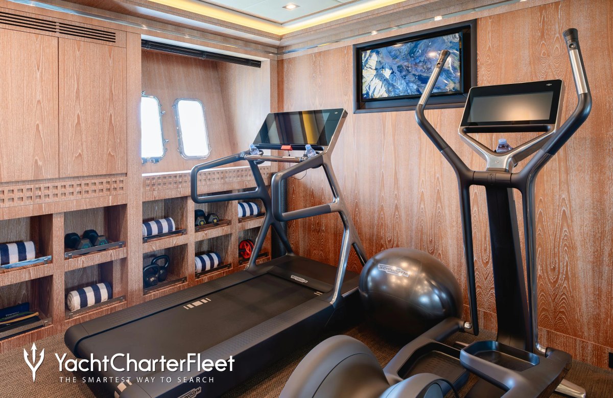A charter on Royale X is comfortable and convenient thanks to the provided amenities, notably a gym with all the latest equipment to maintain your fitness routine.