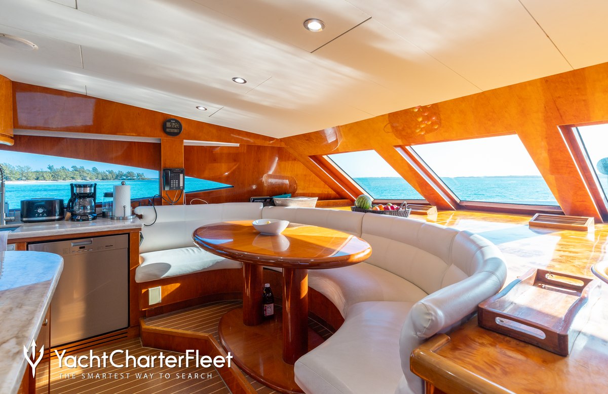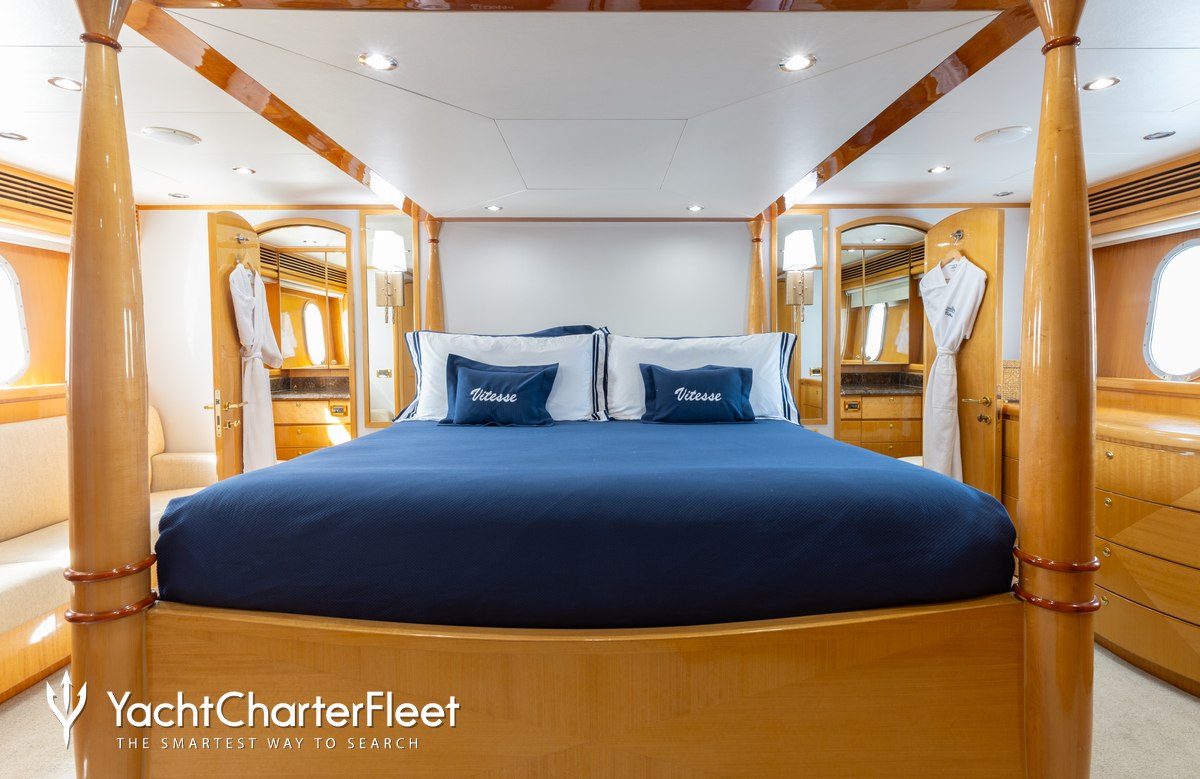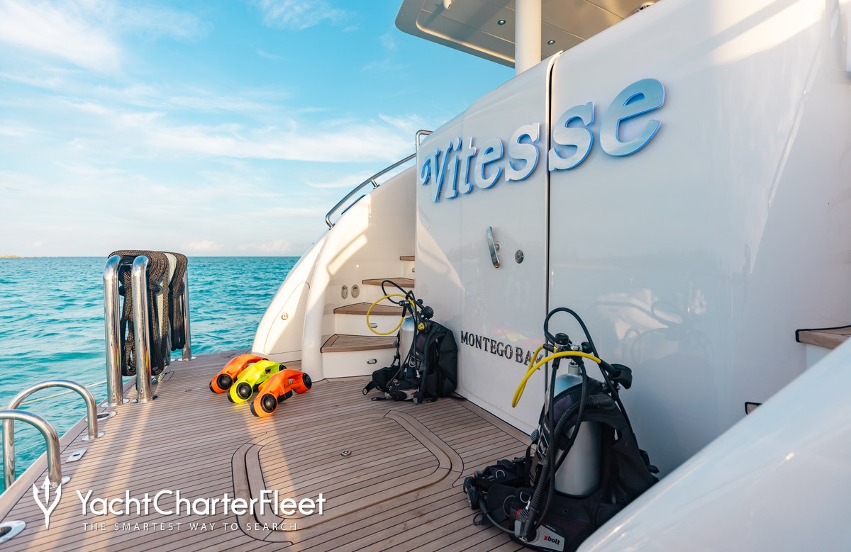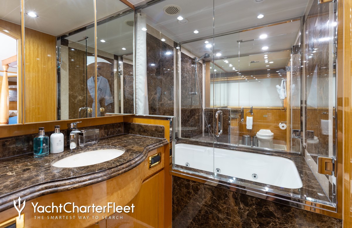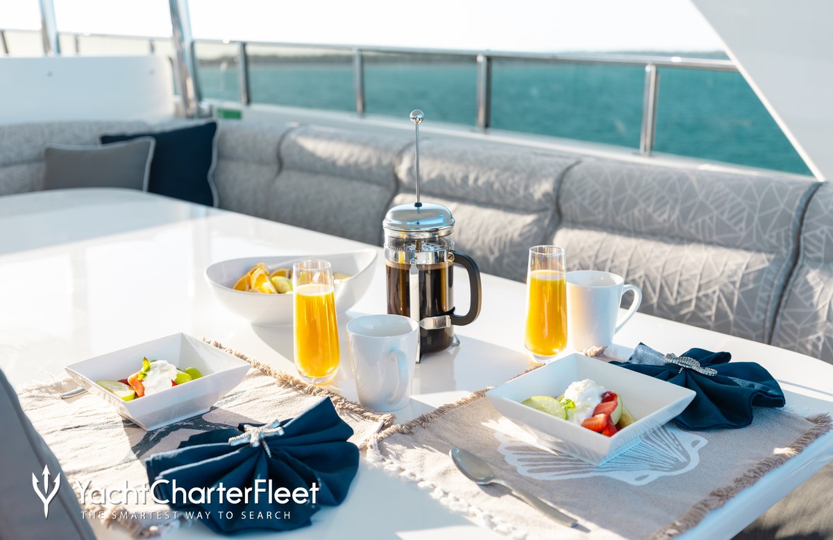 Whatever your activities on your charter, you'll find some impressive features are seamlessly integrated to help you including the underwater lights, adding spectacle and style after dark. With Wi-Fi connectivity you don't have to lose contact with the outside world, unless you want to or guests will experience complete comfort while chartering thanks to air conditioning.