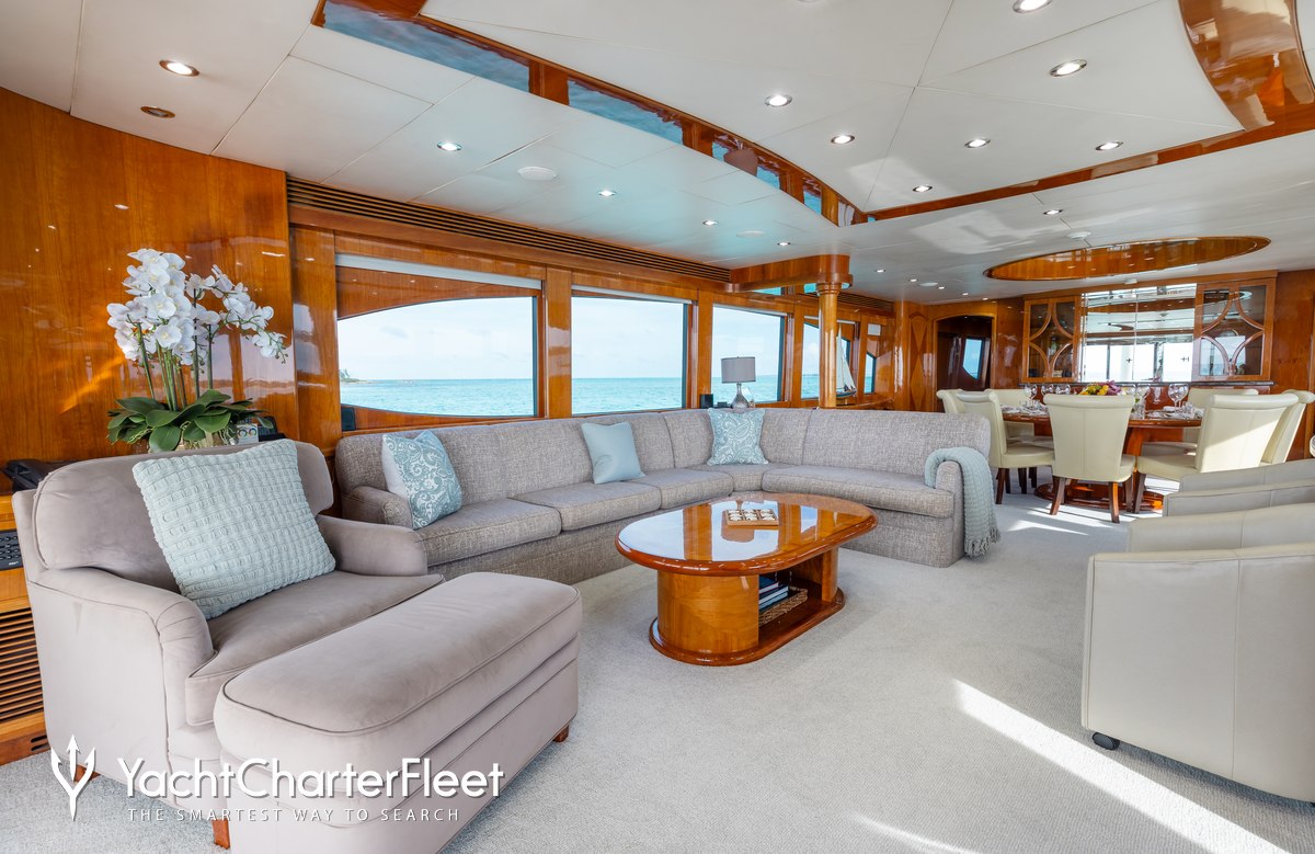 The 30.5m/100'1" 'Lady Sandra' motor yacht built by the American shipyard Hargrave is available for charter for up to 8 guests in 4 cabins. This yacht features interior styling by American designer Yacht Interiors by Shelley.