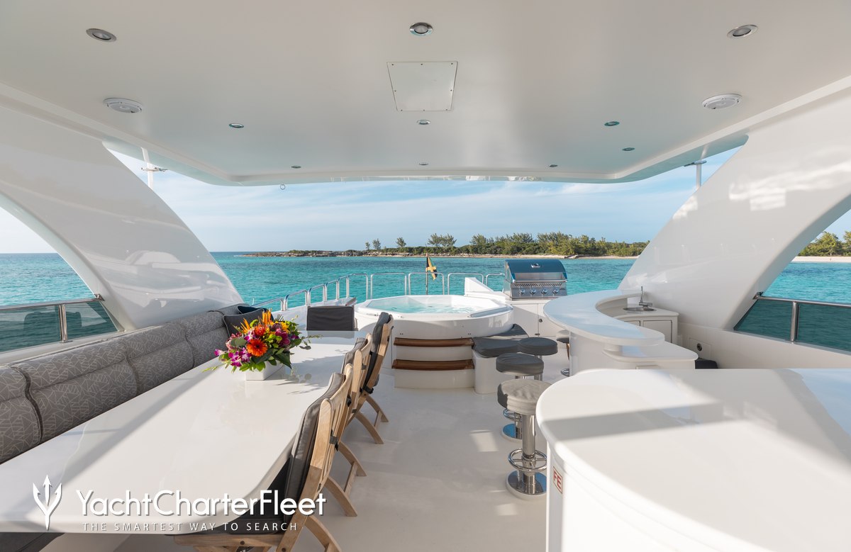 A charter on Lady Sandra is comfortable and convenient thanks to the provided amenities including a deck jacuzzi, perfect to enjoy the scenery with your favourite drink in hand.