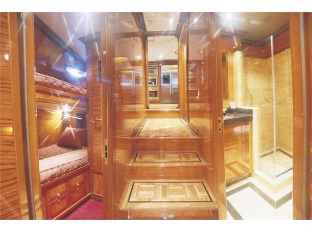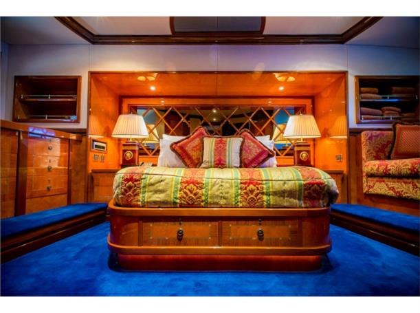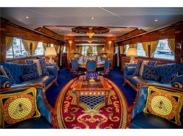 The 32.13m/105'5" motor yacht 'Patriot' by shipyard Lloyds Ships offers flexible accommodation for up to 8 guests in 4 cabins and features interior styling by Versace.