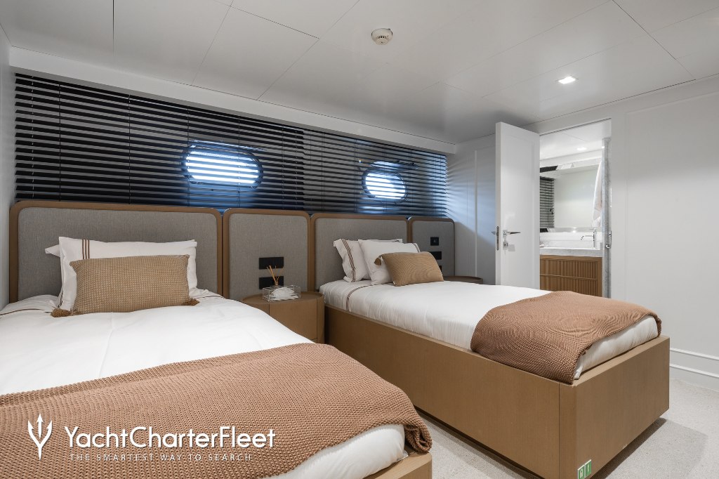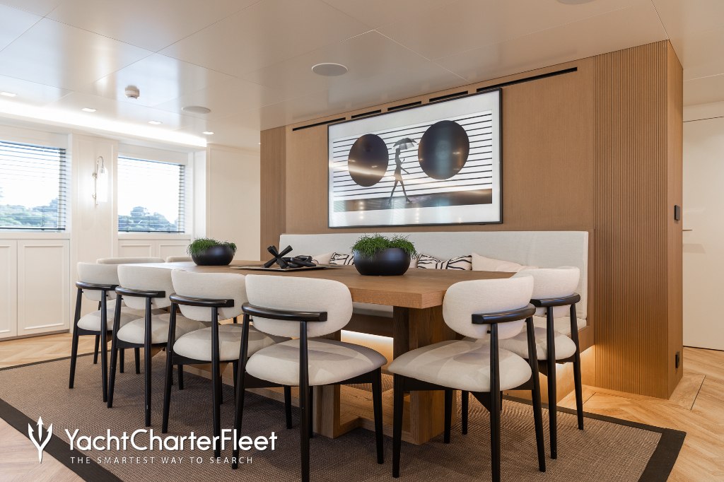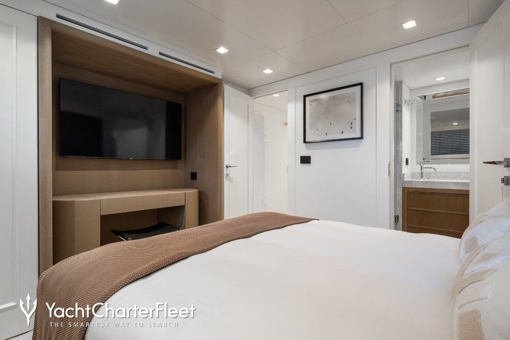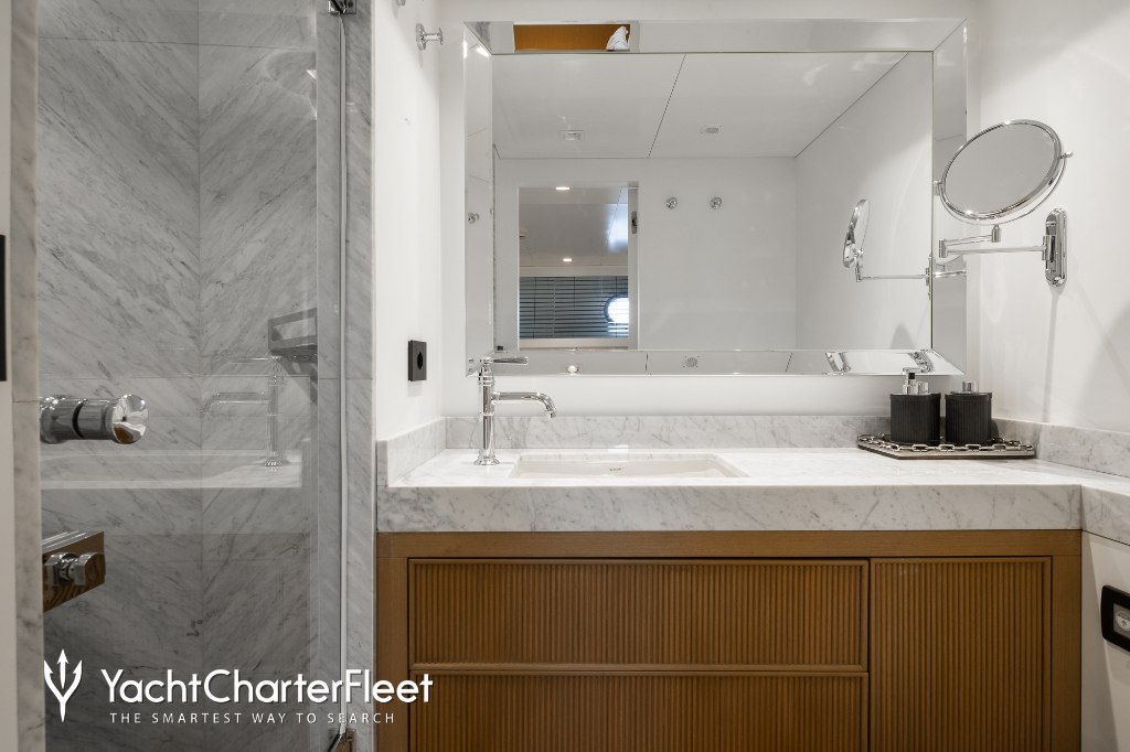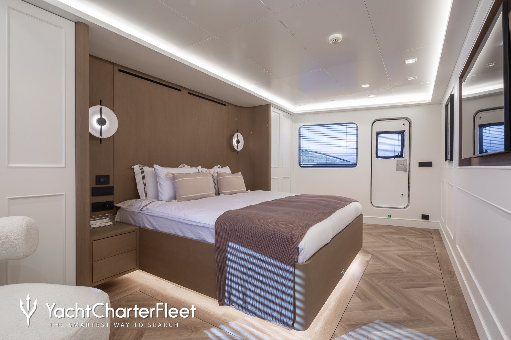 Whatever your activities on your charter, you'll find some impressive features are seamlessly integrated to help you including the underwater lights, adding spectacle and style after dark. Guests will experience complete comfort while chartering thanks to air conditioning.