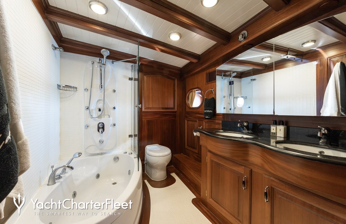 Built in 2007, Take It Easier offers guest accommodation for up to 11 guests in 5 suites comprising a master suite, one VIP cabin, one double cabin and two twin cabins. She is also capable of carrying up to 8 crew onboard to ensure a relaxed luxury yacht charter experience.
