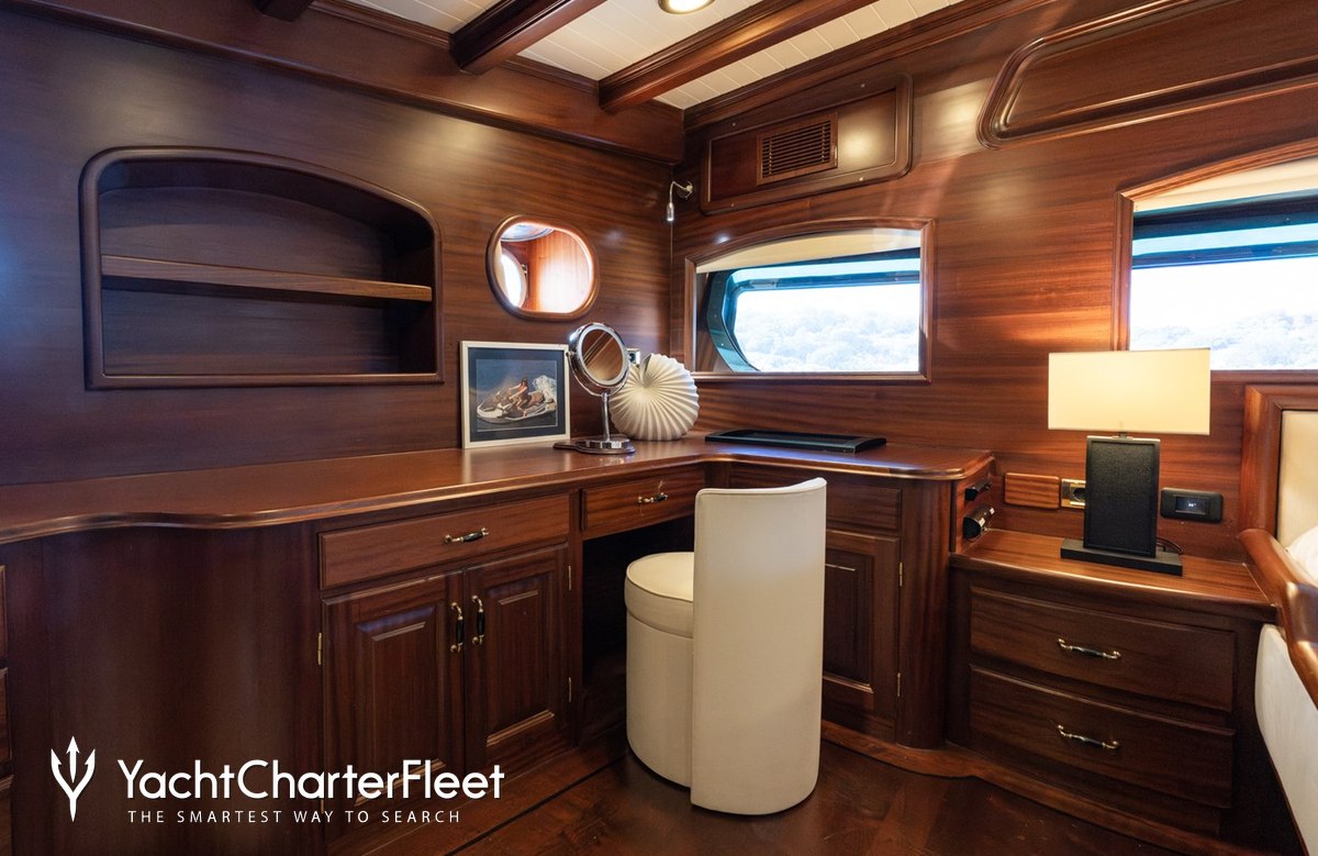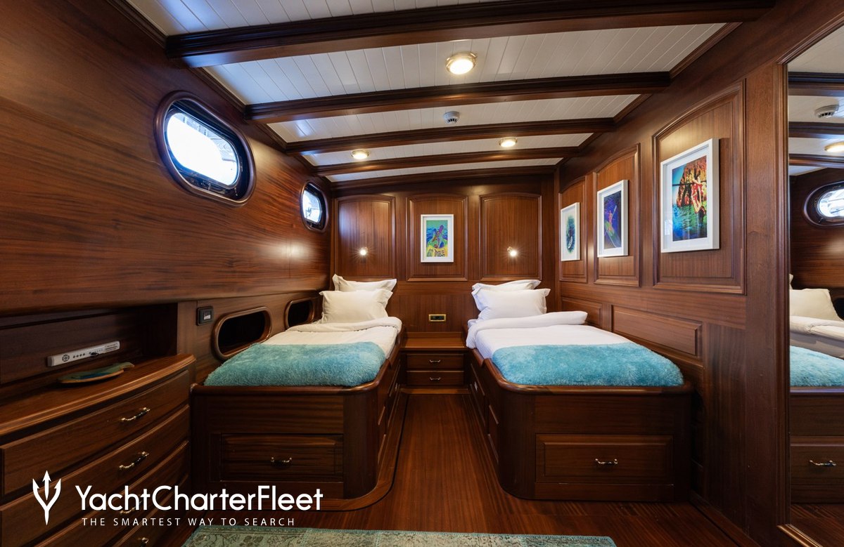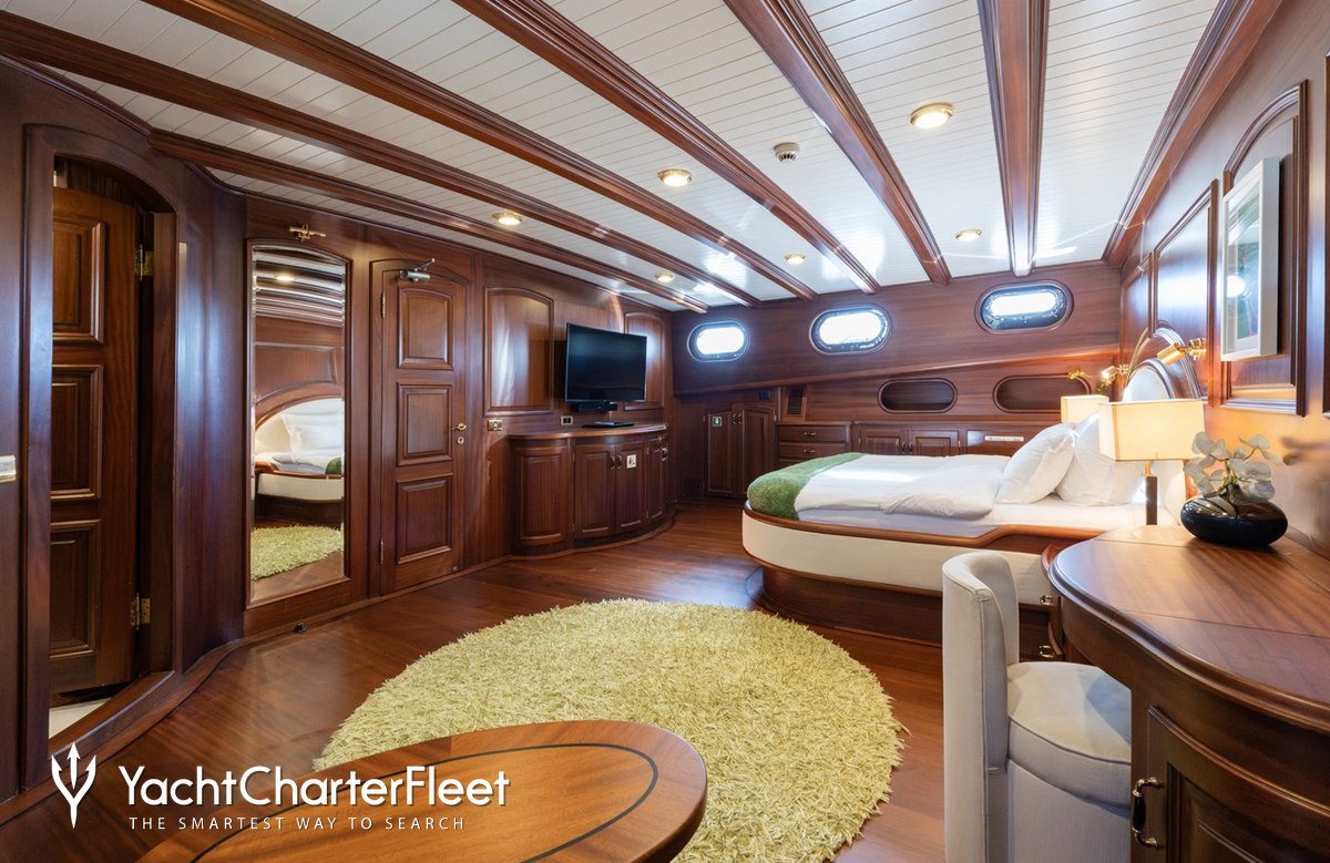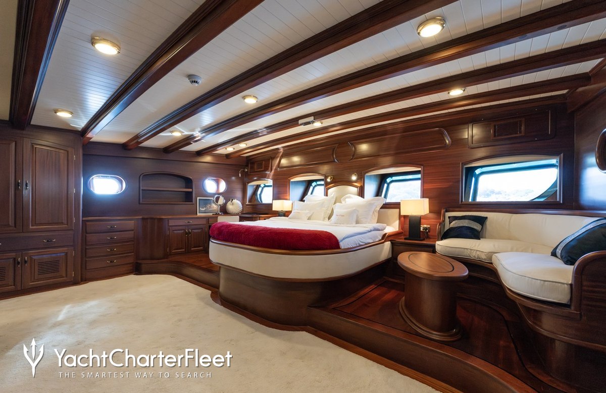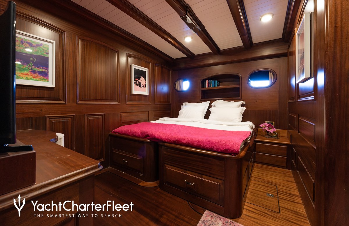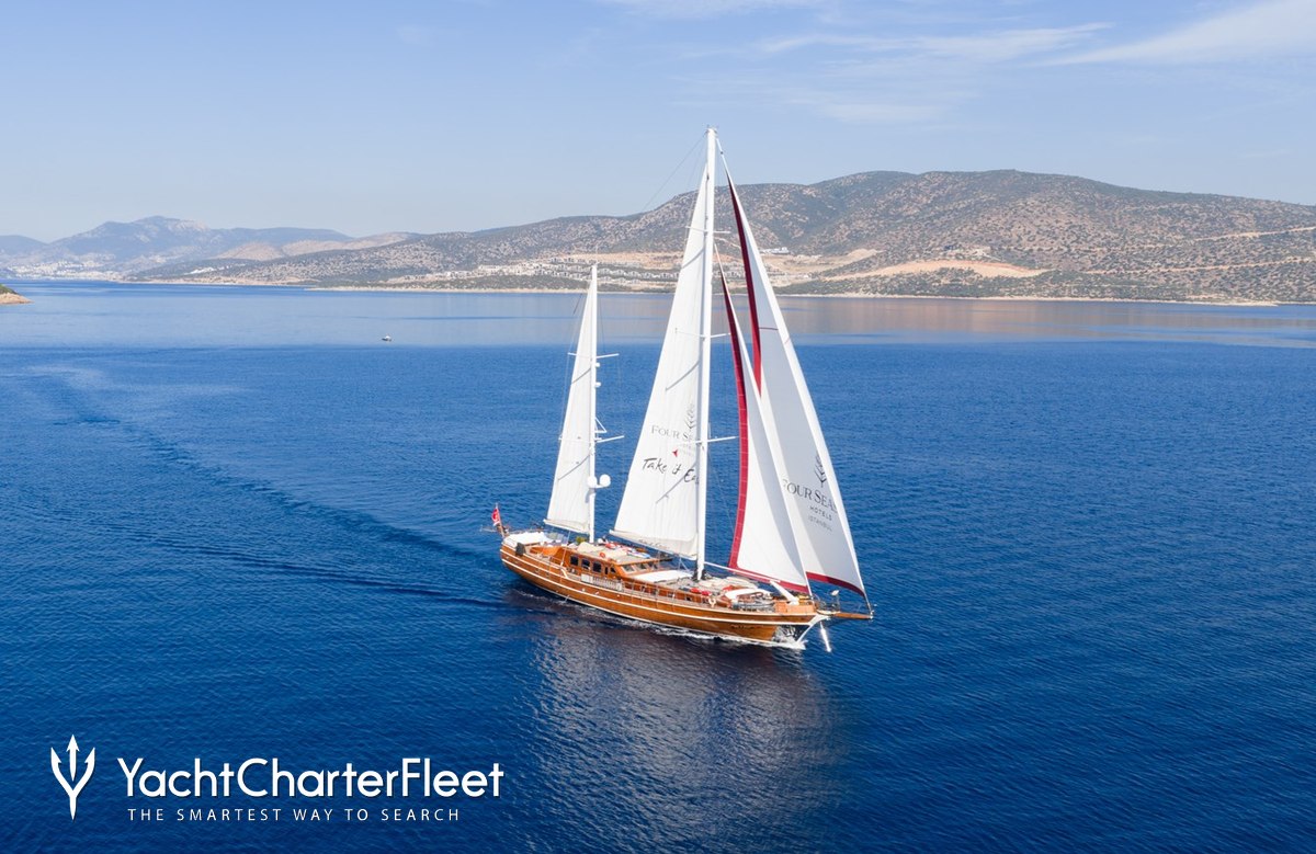 The 38m/124'8" 'Take It Easier' gulet yacht built by shipyard Cavusoglu Yat Imalathanesi is available for charter for up to 11 guests in 5 cabins.