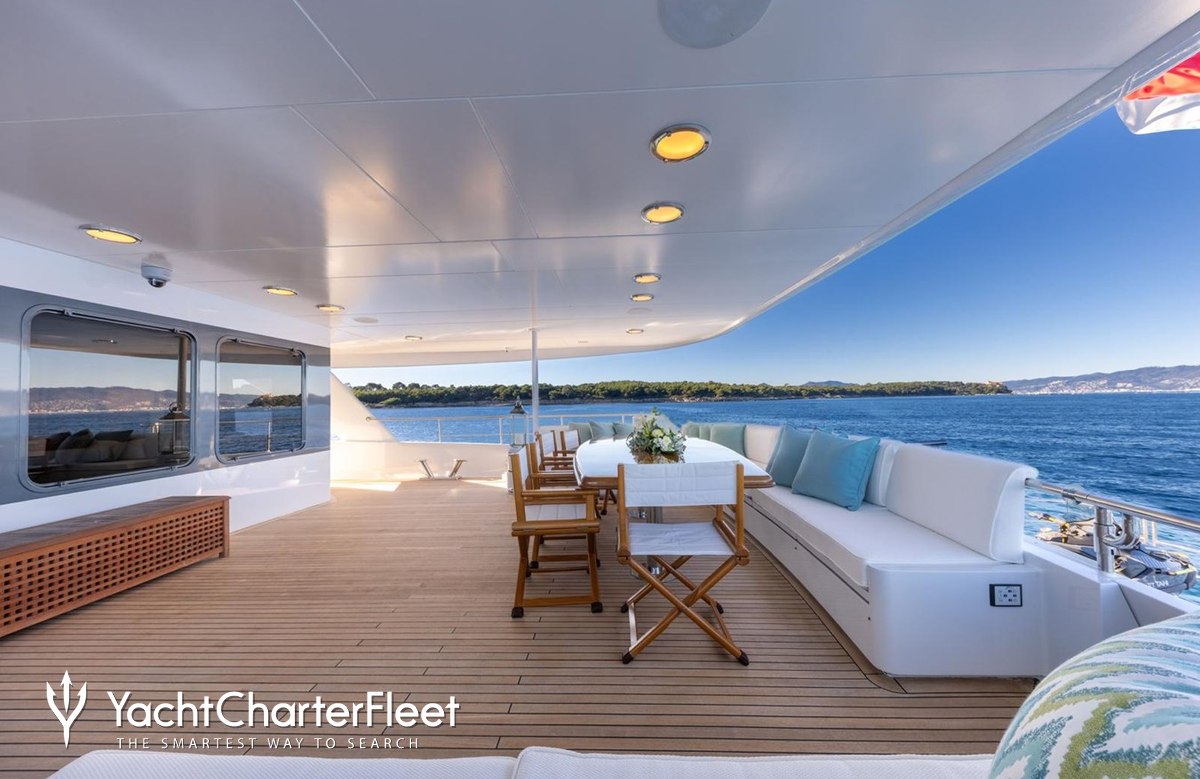Built in 1993, Tahi offers beautifully proportioned decks for exquisite indoor/outdoor living during a luxury yacht charter.