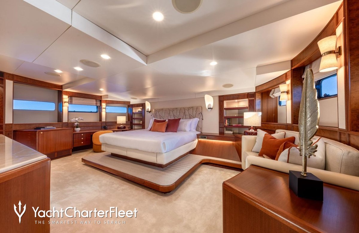 Tahi offers guest accommodation for up to 10 guests in 5 suites comprising a master suite, two double cabins and two twin cabins. There are 7 beds in total, including 1 king, 2 queen and 4 singles. She is also capable of carrying up to 9 crew onboard to ensure a relaxed luxury yacht charter experience.