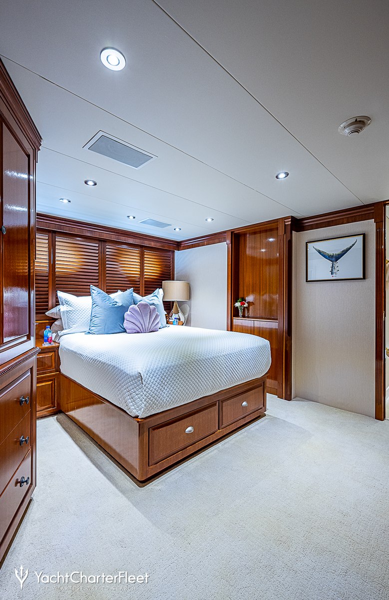 Families will particularly love Package Deal thanks to her child-friendly setup. Built in 1999, She offers guest accommodation for up to 10 guests with a layout comprising a master suite, one VIP cabin, two double cabins and one twin cabin. There are 5 beds in total, including 2 king, 1 queen, 2 singles and 1 pullman. She is also capable of carrying up to 7 crew onboard to ensure a relaxed luxury yacht charter experience.