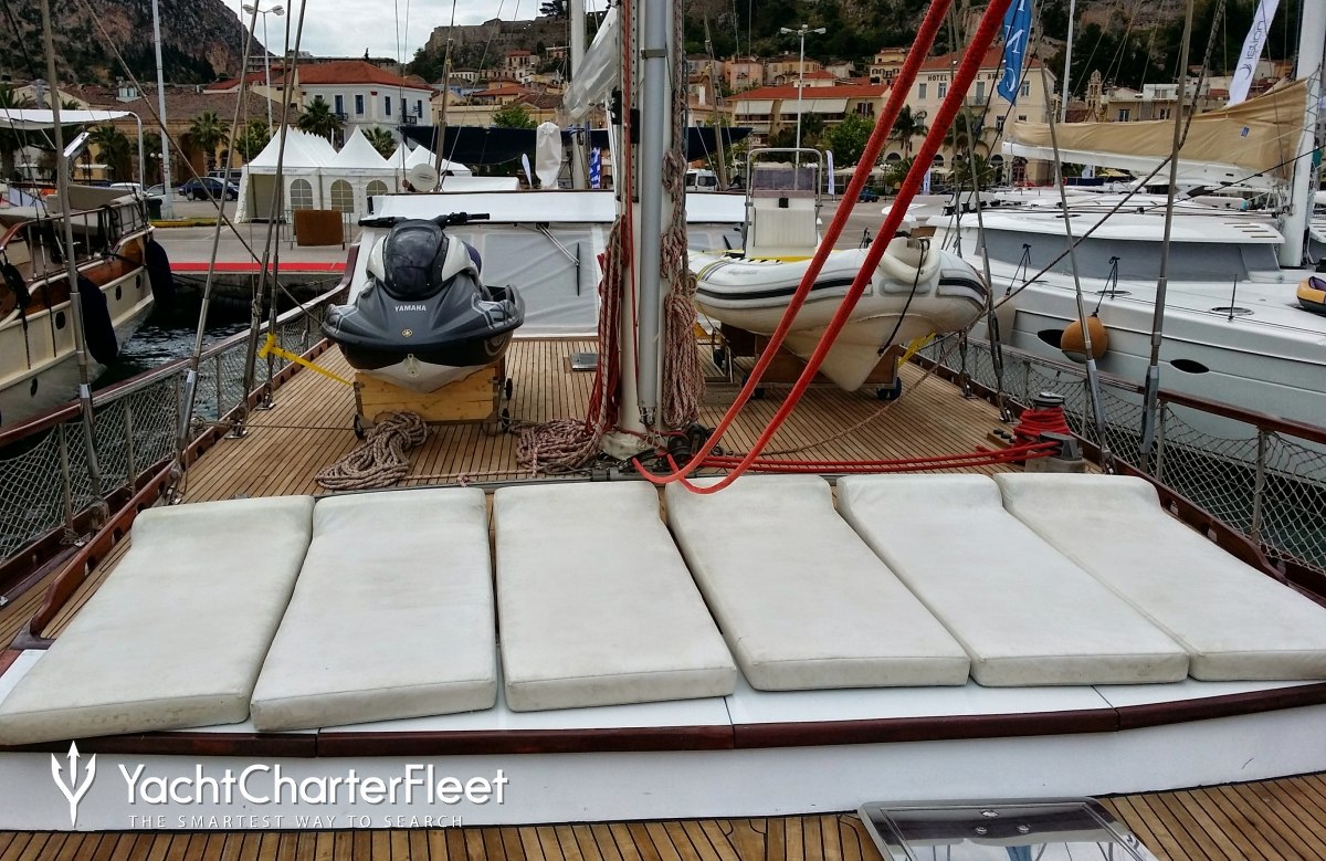 Troia is available upon request for charter this winter. She is already accepting bookings this summer for cruising in the Mediterranean.
