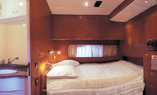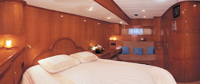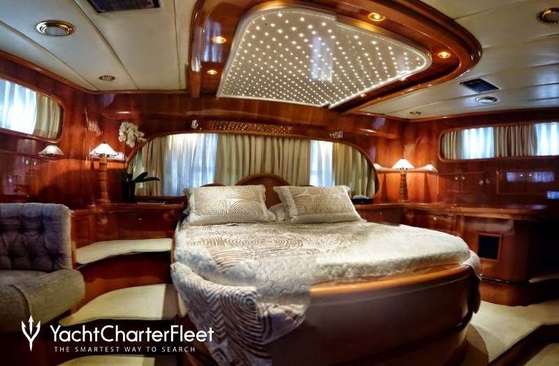 Built in 2002, Troia offers guest accommodation for up to 12 guests in 6 suites comprising a master suite, one VIP cabin and four double cabins. The bed configuration includes 1 king and 5 queen.
