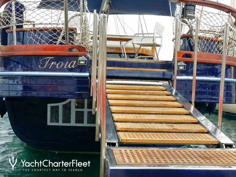 The 34.14m/112' gulet yacht 'Troia' by Troia Shipyard offers flexible accommodation for up to 12 guests in 6 cabins.