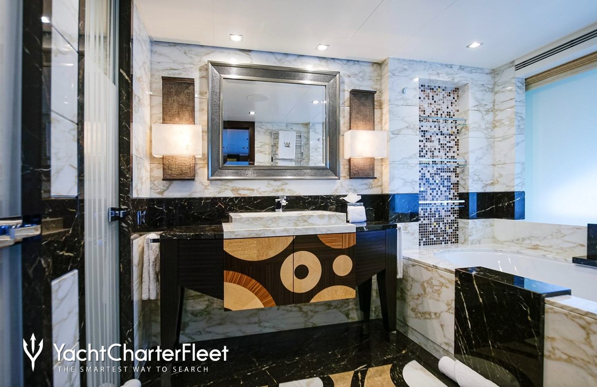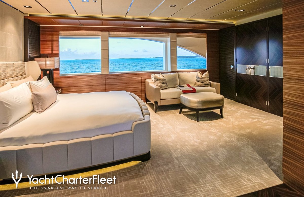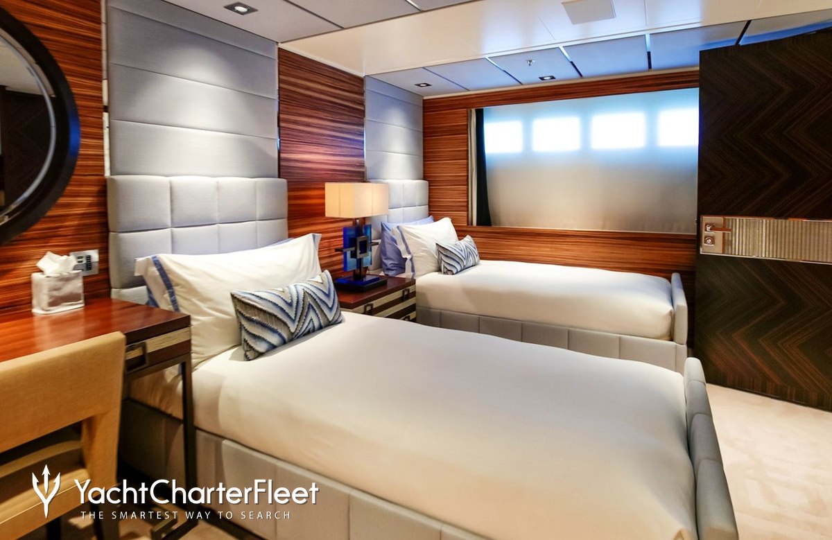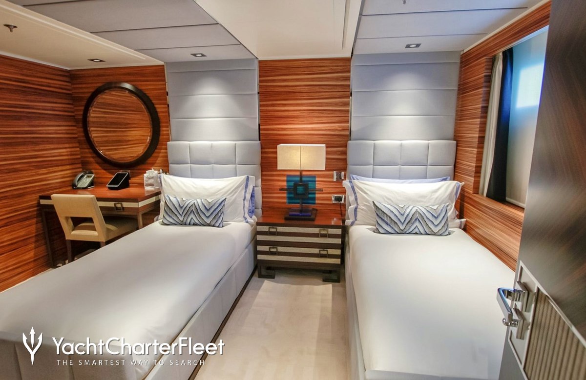Built in 2013, Beowulf offers guest accommodation for up to 10 guests in 5 suites comprising a master suite located on the main deck, one VIP cabin, two double cabins and one twin cabin. There are 8 beds in total, including 3 king, 1 queen and 4 singles. She is also capable of carrying up to 12 crew onboard to ensure a relaxed luxury yacht charter experience.