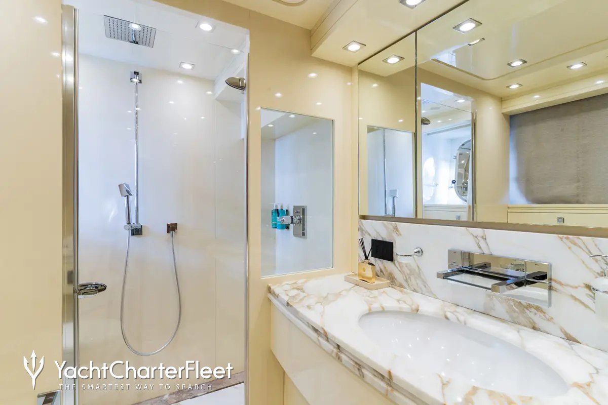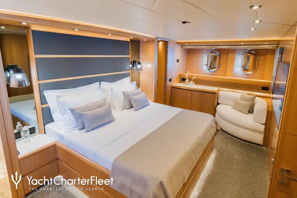 Cynthia offers guest accommodation for up to 8 guests in 4 suites comprising a master suite, one VIP cabin and two double cabins. She is also capable of carrying up to 6 crew onboard to ensure a relaxed luxury yacht charter experience.