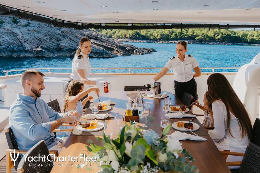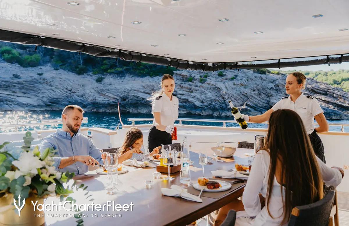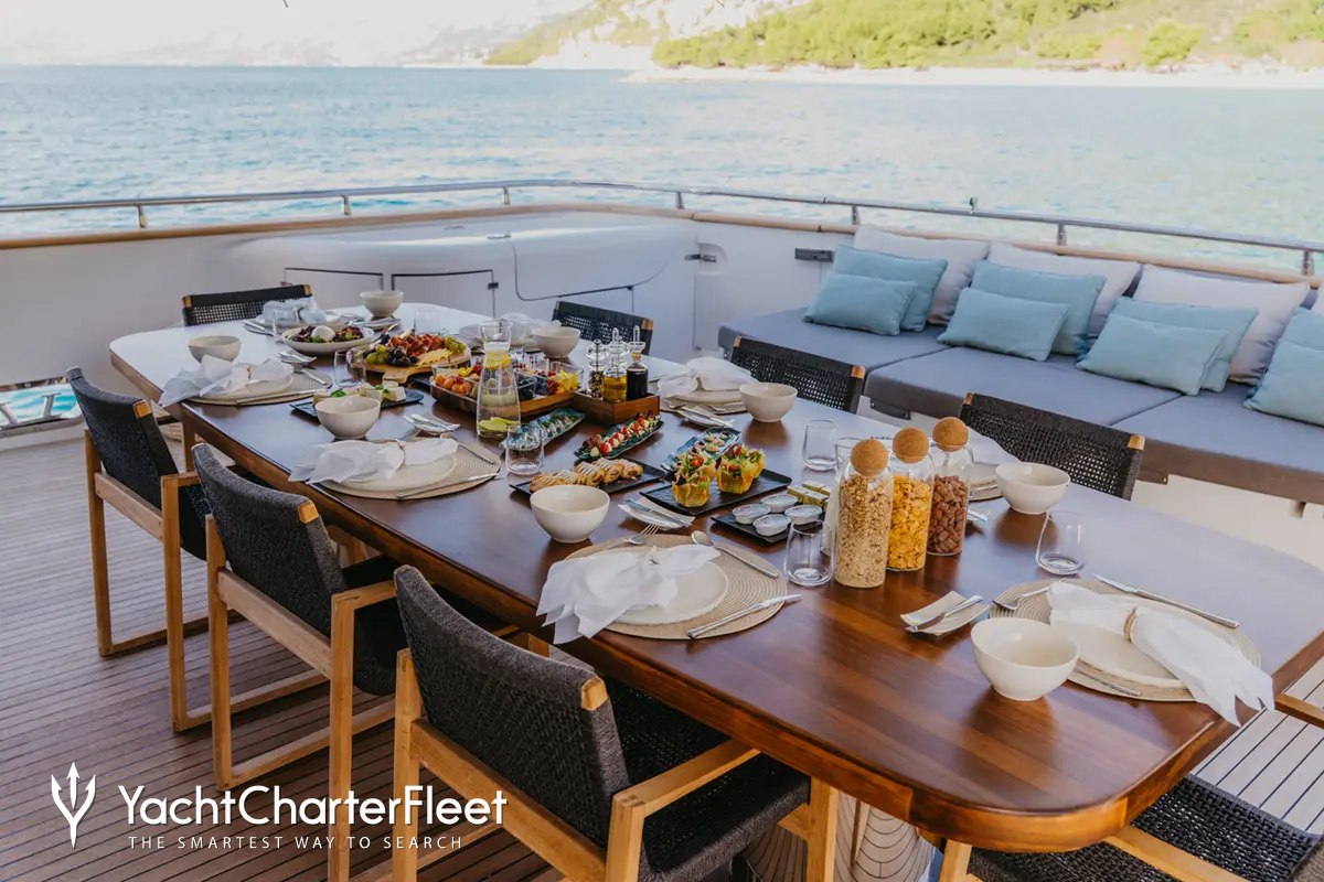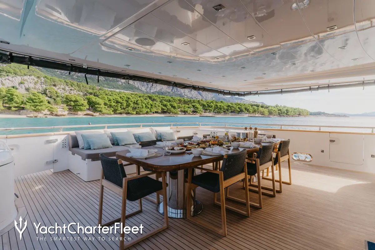 Built in 2010, Cynthia offers beautifully proportioned decks for exquisite indoor/outdoor living during a luxury yacht charter.