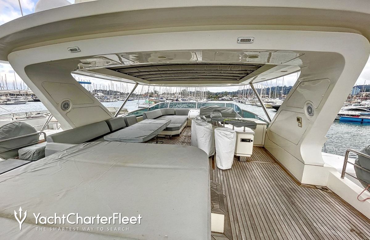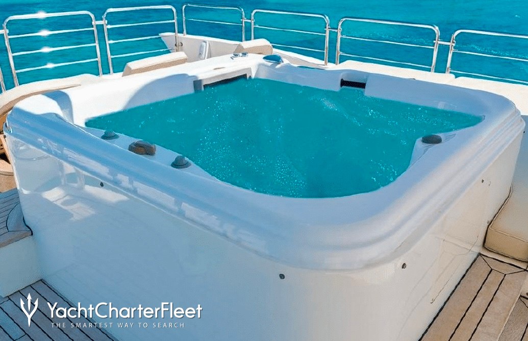 Keeping comfortable and entertained on La Fenice is easy thanks to the available amenities such as a deck jacuzzi, perfect to enjoy the scenery with your favourite drink in hand.