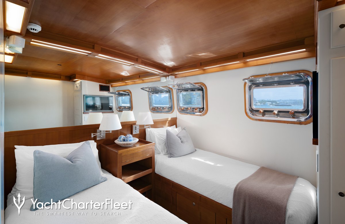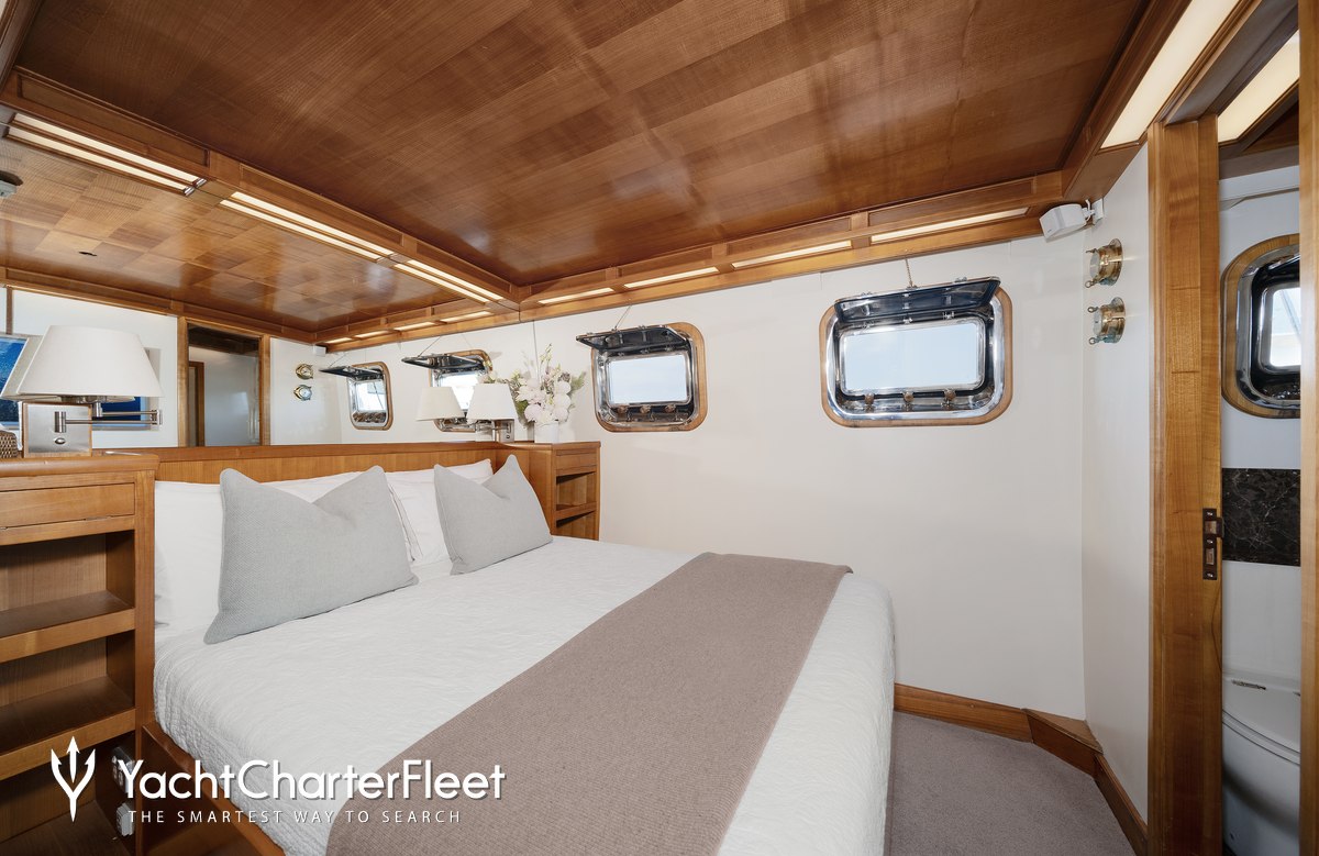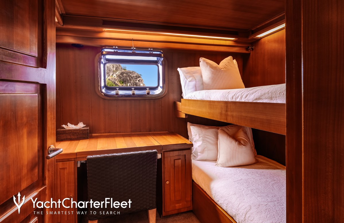 Built in 1989, Southern Cloud offers guest accommodation for up to 12 guests in 6 suites comprising a master suite, two VIP cabins and two cabins that can operate as twins or doubles. The bed configuration includes 3 doubles and 8 singles. She is also capable of carrying up to 7 crew onboard to ensure a relaxed luxury yacht charter experience.