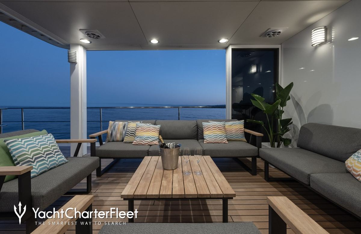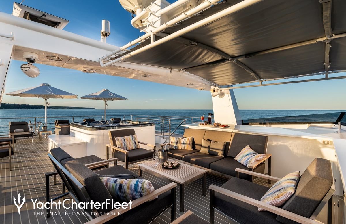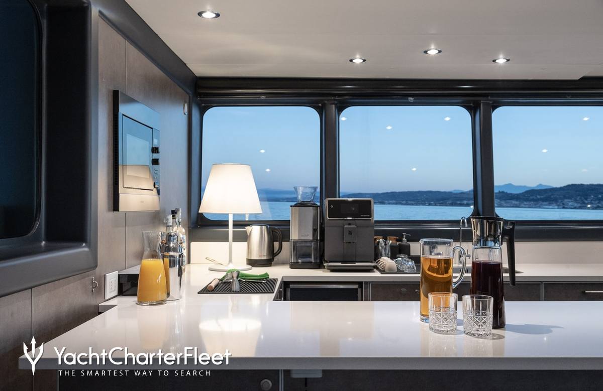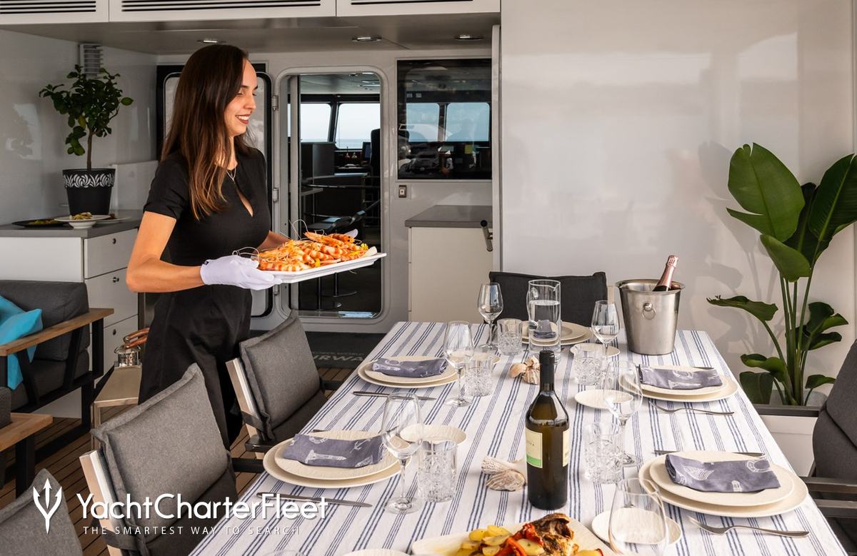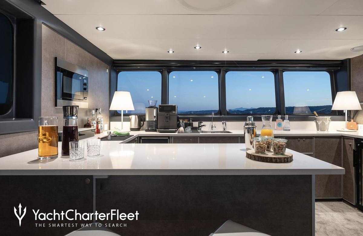 Whatever your activities on your charter, you'll find some impressive features are seamlessly integrated to help you including Wi-Fi connectivity, allowing you to stay connected at all times, should you wish. You can stay comfortable on board whatever the weather, with air conditioning during your charter.