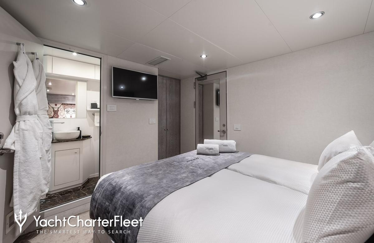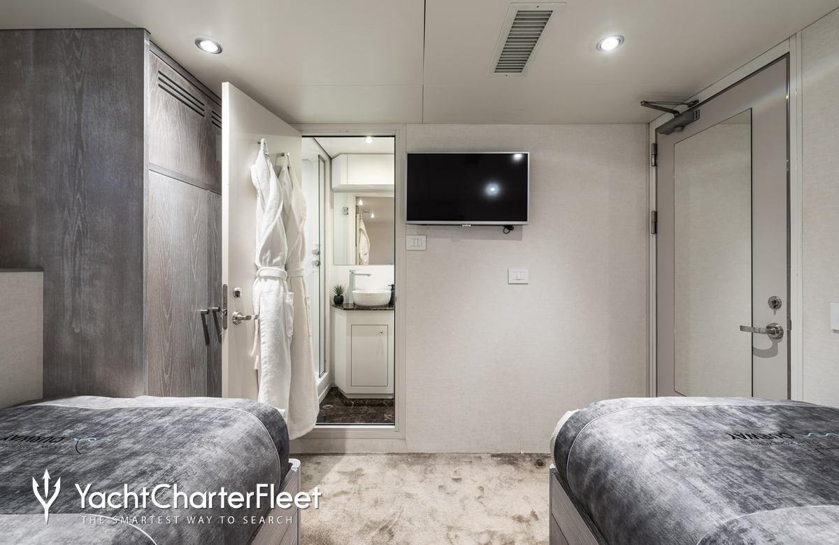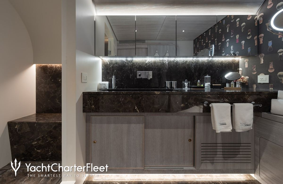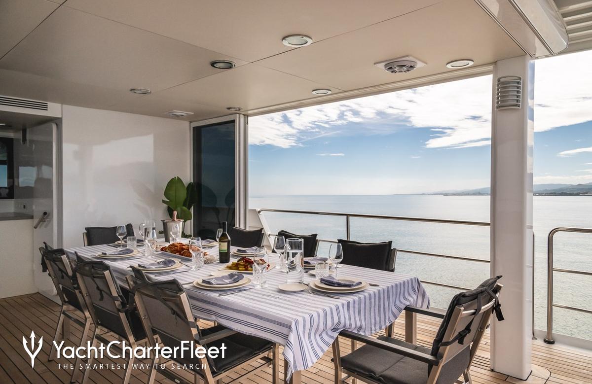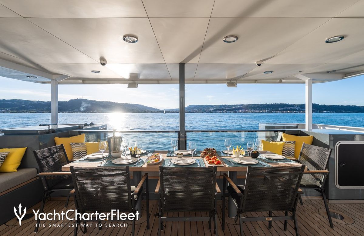 Whatever your activities on your charter, you'll find some impressive features are seamlessly integrated to help you including Wi-Fi connectivity, allowing you to stay connected at all times, should you wish. You can stay comfortable on board whatever the weather, with air conditioning during your charter.