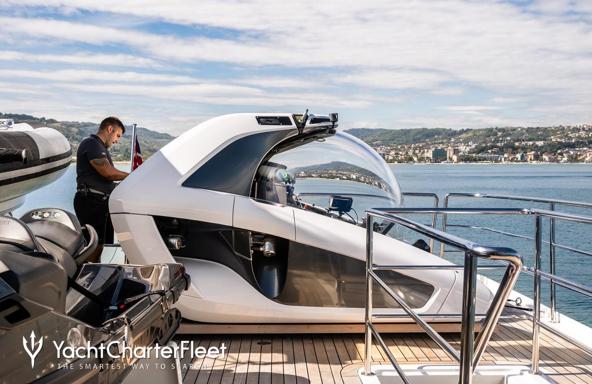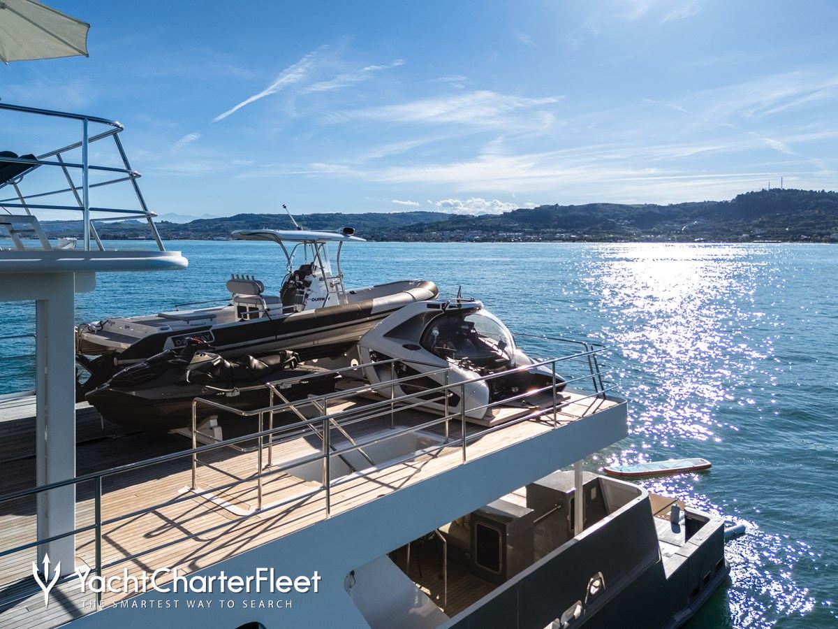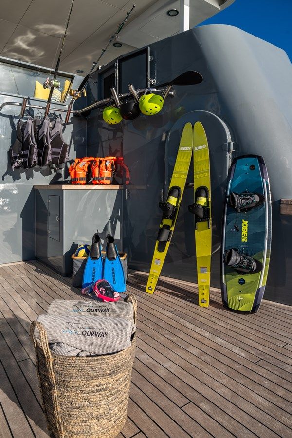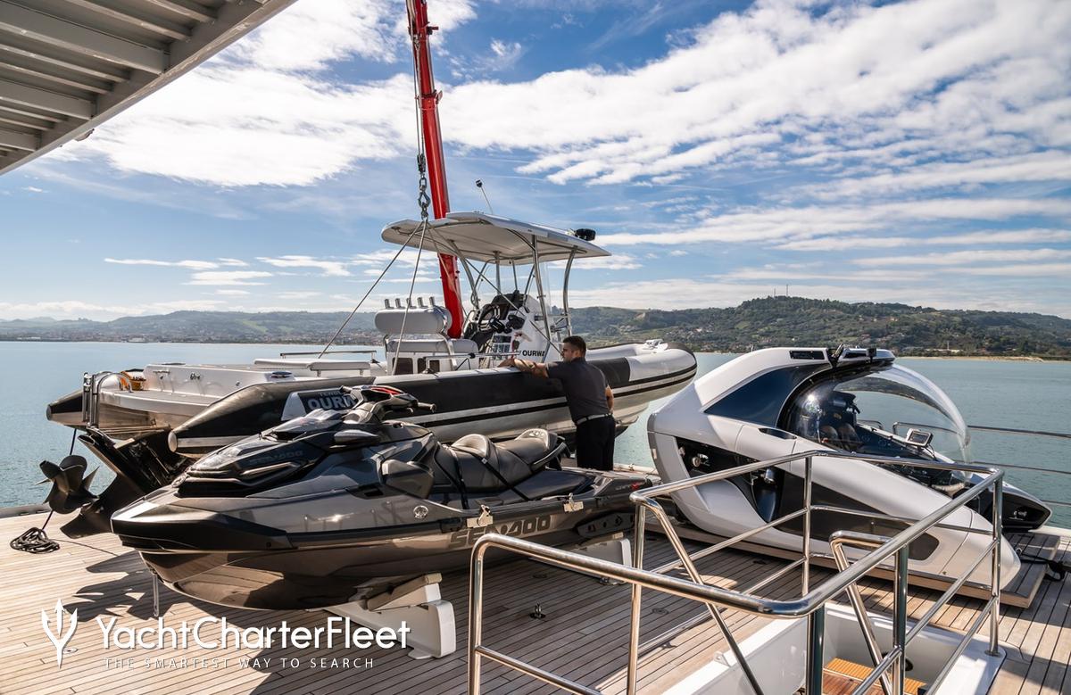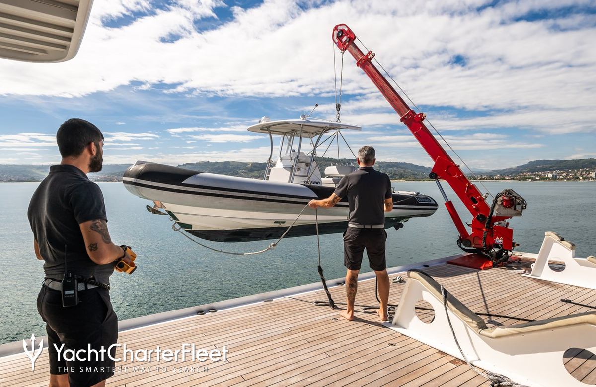 Set against the backdrop of your chosen cruising ground, you and your guests can enjoy fun on the water with the collection of water toys and accessories aboard B89. Take to the sea on the Jet Skis offering you power and control on the water. Additionally, there are SEABOBs, that allow you to skim along the surface or steer under the crystal water and see a variety of aquatic sea life. Also there are wakeboards so guests can show off at speed. If that isn't enough B89 also features kayaks and paddleboards. When it's time to travel from land to see, it couldn't be easier with a 7.5m/24'7".