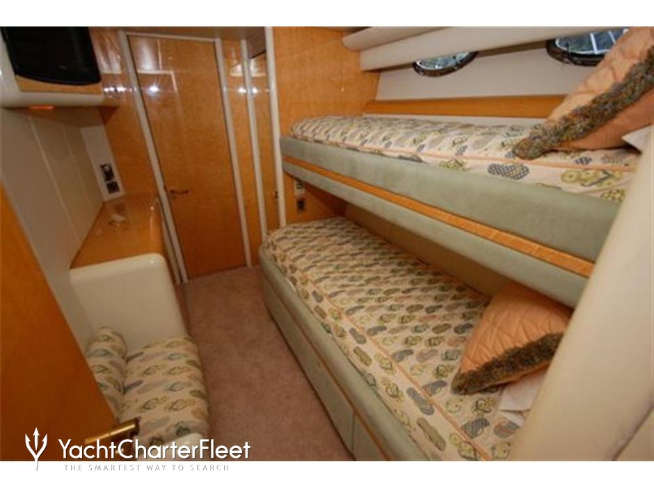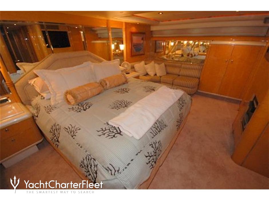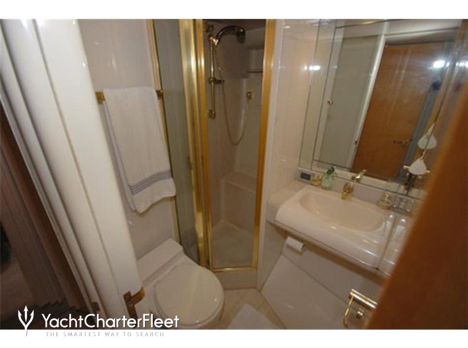 King Kalm is notable for her six cabin layout, offering great flexibility for a charter yacht of this size. Built in 1995, She offers guest accommodation for up to 8 guests with a layout comprising a master suite, two double cabins and two twin cabins. There are 7 beds in total, including 1 king, 2 queen and 4 singles. She is also capable of carrying up to 2 crew onboard to ensure a relaxed luxury yacht charter experience.